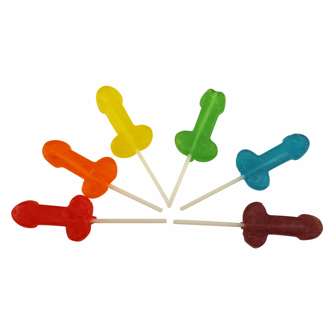Of course, it took our scientists several dozen trials to figure that out. Or maybe they figured it out the first time, and just liked watching the candy-prism split the lollipop into sixths over and over again. Either way, now we’ve got a bunch of these single-colored, single-flavored penis lollipops lying around in perfect groups of six. Maybe you’d like to take them off our hands?