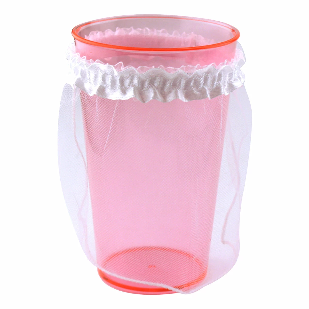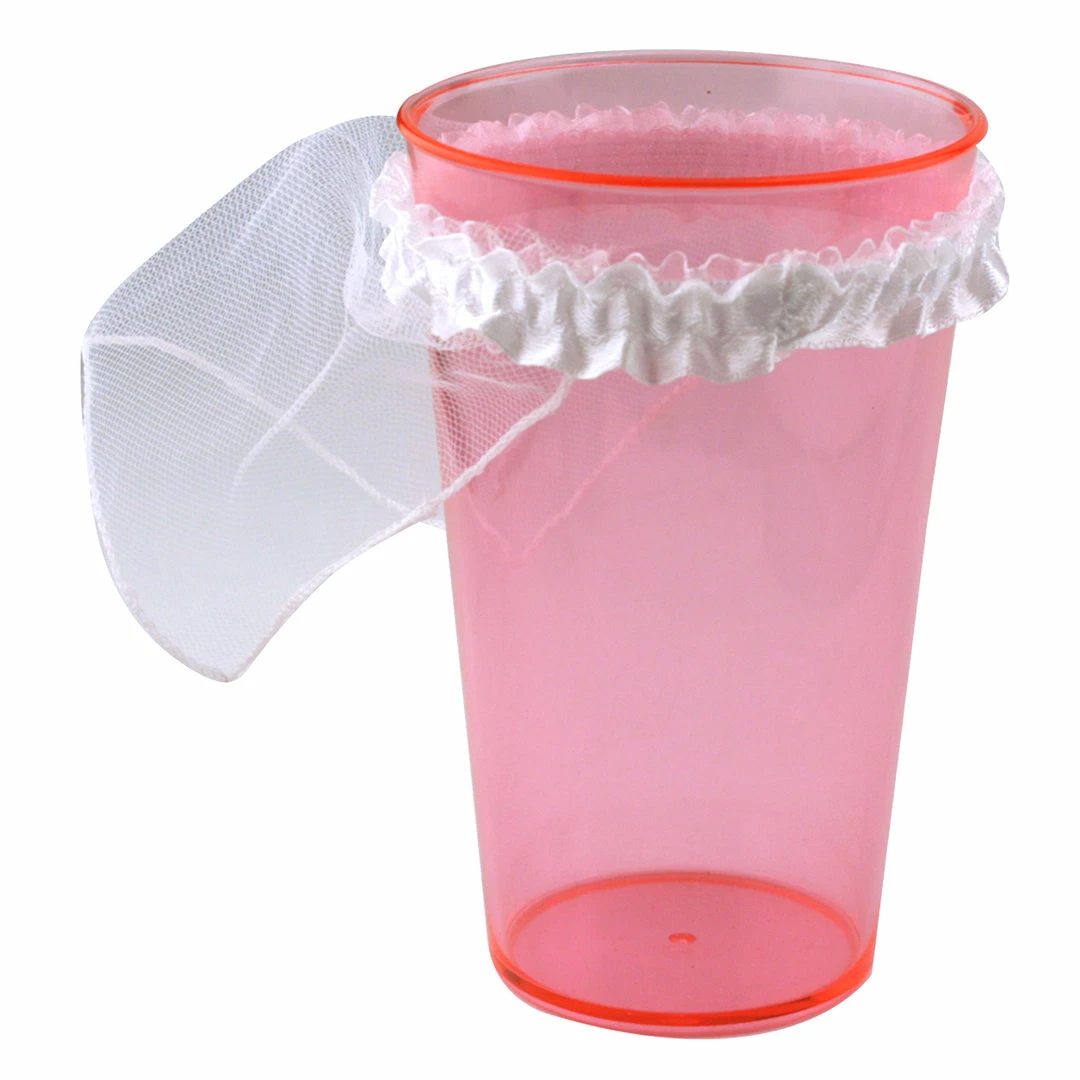 Luckily, now you can erase that incongruity with the Bar Glass Veil! This elegant white tulle veil with a stretchy elastic band slides around the lip of the bachelorette’s glass just as easily as the real veil slides onto her head. It’ll make her drink look so good and so elegant that as she continues to drink from it, people might start wondering which one is the bride-to-be and which one is her drink!