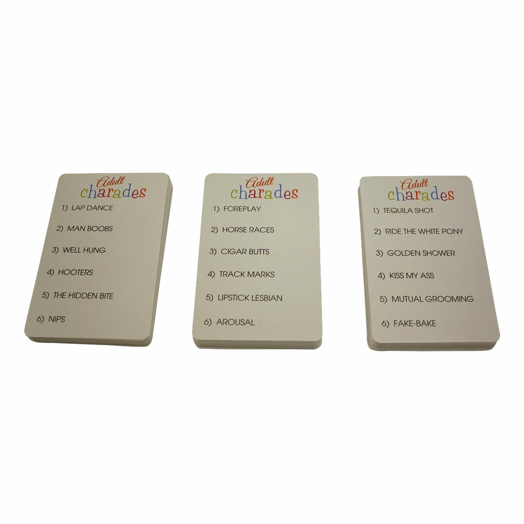 The Adult Charades Game can be played with teams with just two players. The winning team is the one with the most correct answers after each player has performed three times.