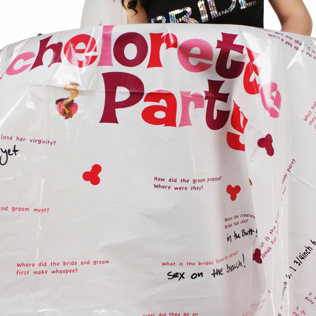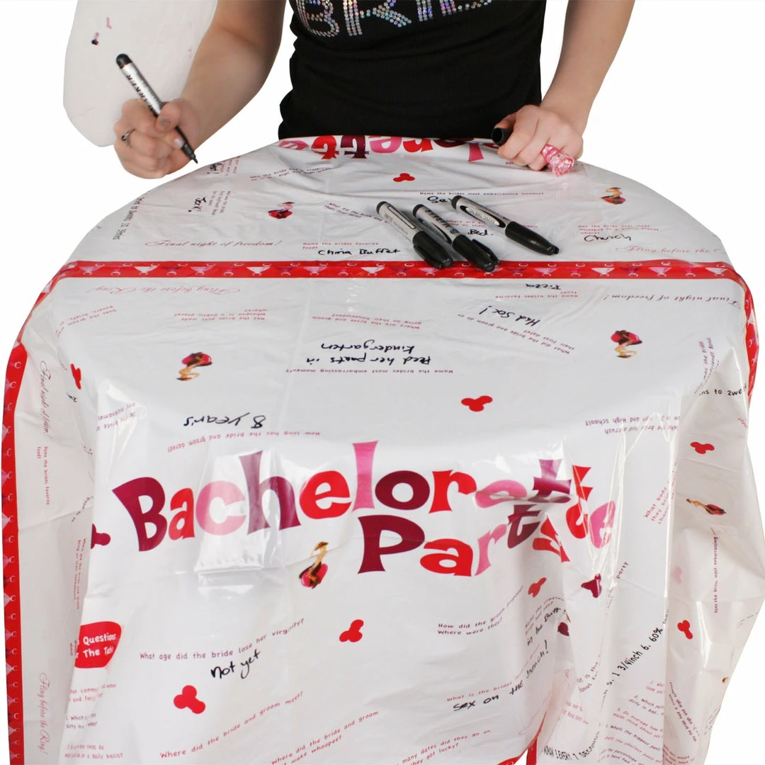 The Pink and Purple Penis Party Tablecloth is a tablecloth that’s covered in fun games for your bachelorette party guests to play as they party! The Pink and Purple Penis Party Tablecloth comes with four markers and is covered with trivia games for the guests to play.