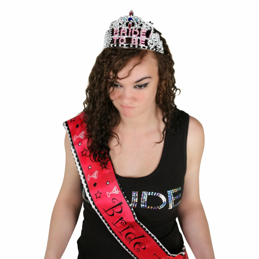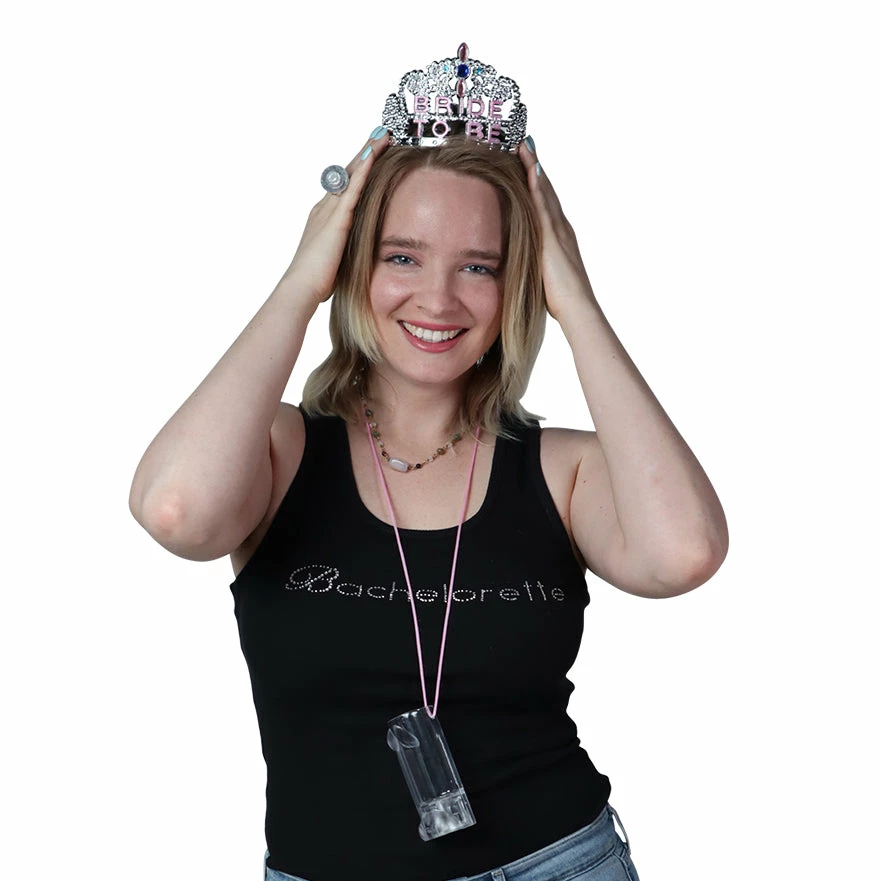 Looking for a classic, cheap, inexpensive way to turn the bachelorette into a princess for the night? Dress her up in the Bride To Be Tiara. This pretty silver tiara isn’t all that well-made, but it looks nice and will do the trick. Just be sure not to flex this comb tiara, as it will break if bent.