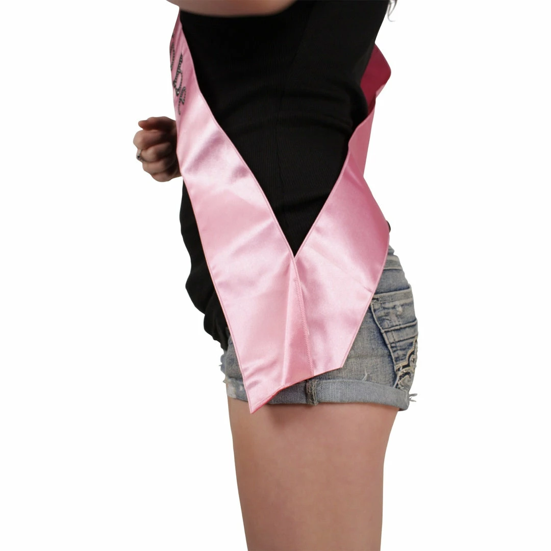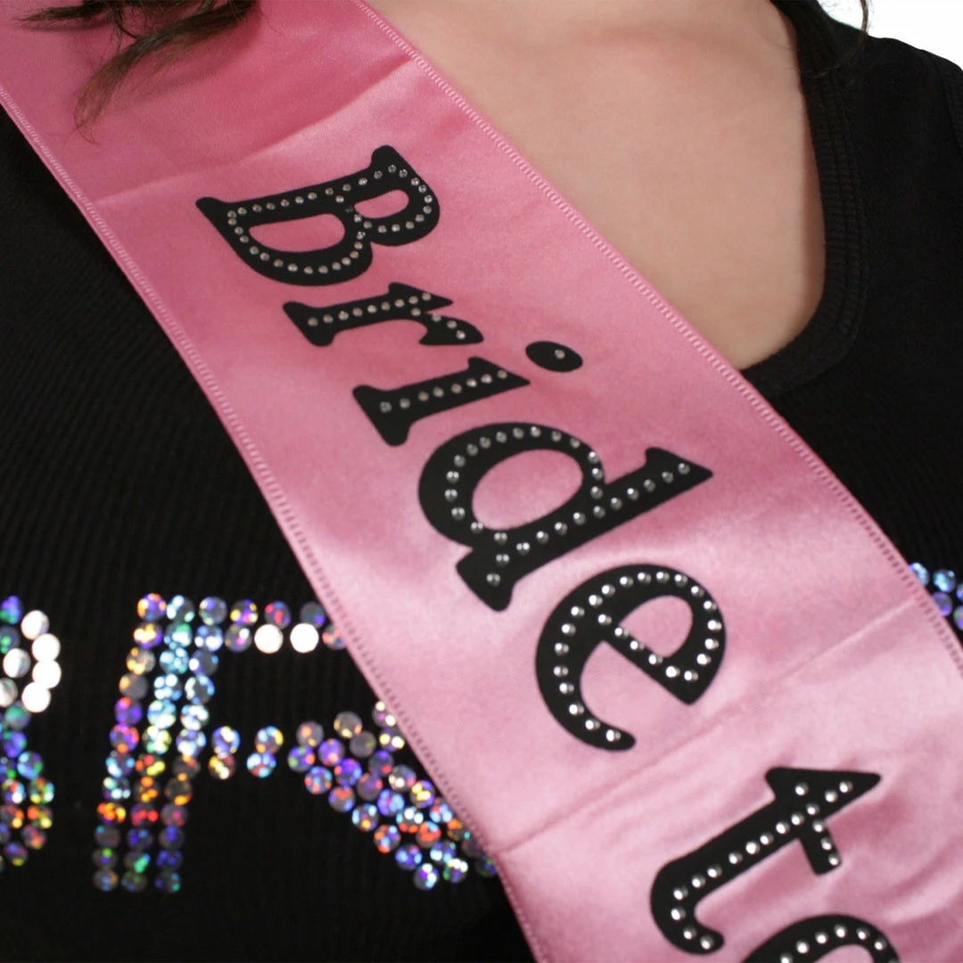 The Pale Pink Bride to Be Sash is an inexpensive sash that celebrates the bride-to-be on her special day! We like this Bride to Be Sash because it’s pink and black—traditional bachelorette party colors—and the lettering is lined with flashy silver gemstones.