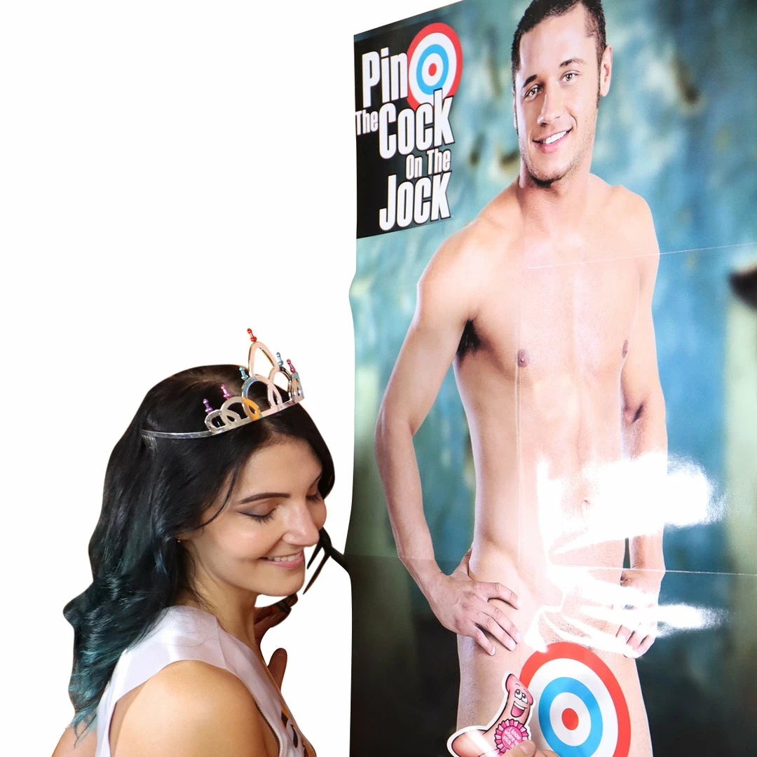 The Pin the Cock on the Jock Game is a hilarious and sexy variation of a Pin the Tail on the Donkey style game. Instead of donkeys and tails, Pin the Cock on the Jock includes a poster of a handsome hunk, along with 15 pieces of possible manhood. The Pin the Cock on the Jock poster is double sided and features a white guy on one side, and a black guy on the other, to ensure that everyone can get the satisfaction they want out of this game.
