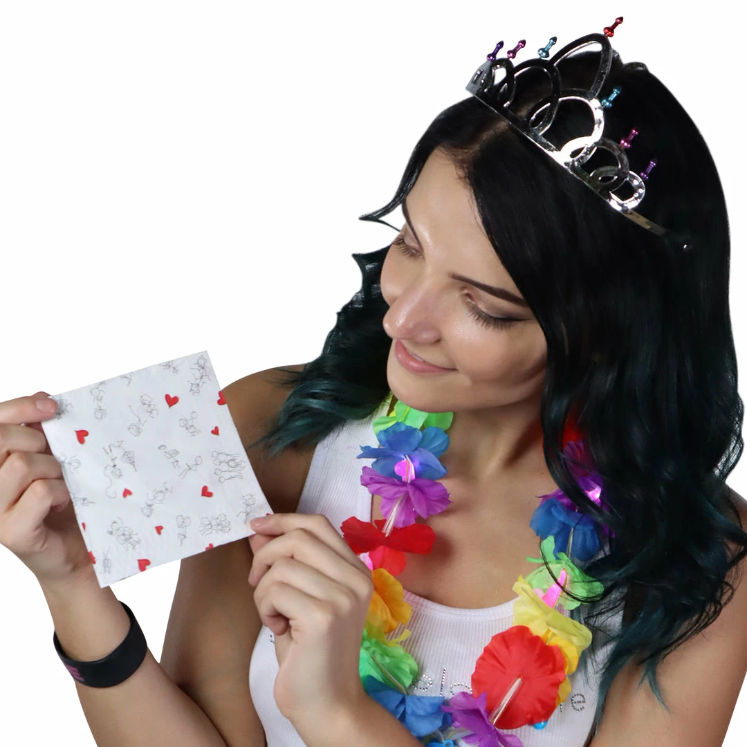 If you love these and are looking to decorate your bachelorette party with further sex position items, we don’t blame you. They’re much more exciting than simple penis-shaped decorations! There are plates that go with these napkins, and toilet paper decorated in a similar fashion, too!