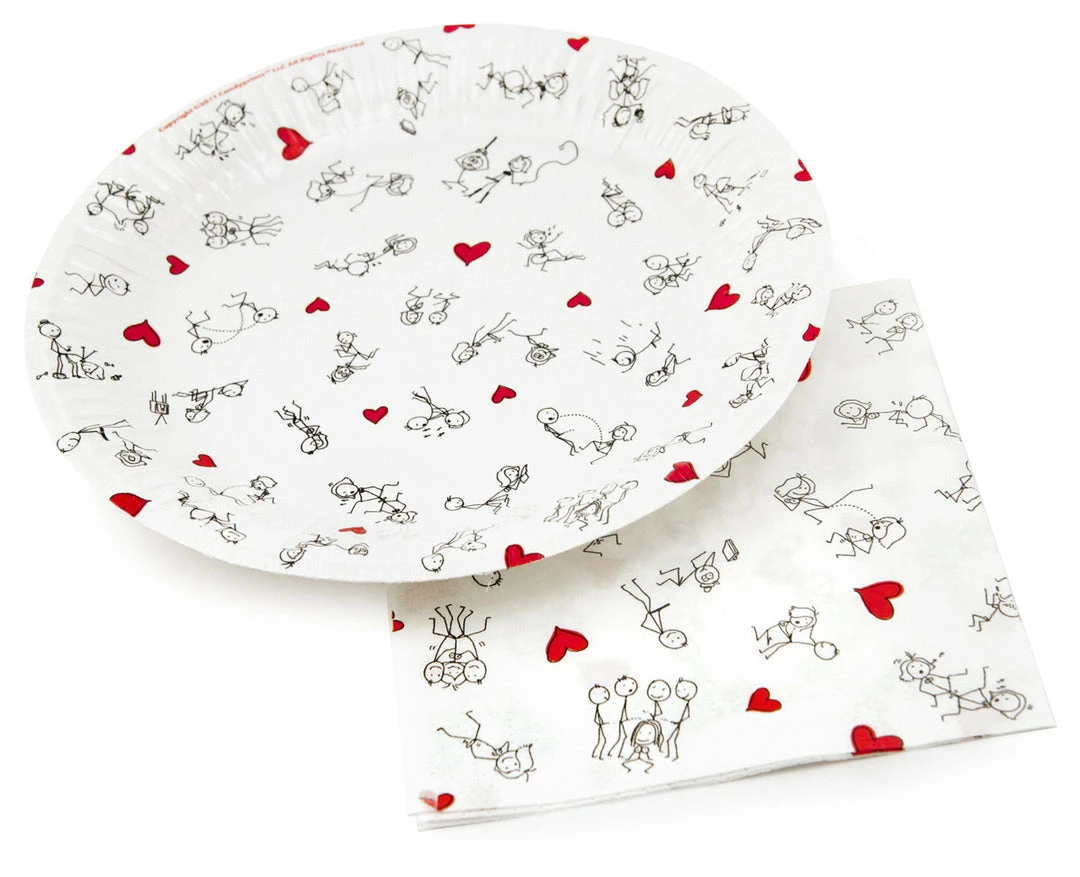 Use the Dirty Dishes Sex Position Napkins at the bachelorette party for a fun variation of traditional penis napkins. These plates come in a classic white color with black and red print on them. These plates are somehow classier than other bachelorette party plate options.