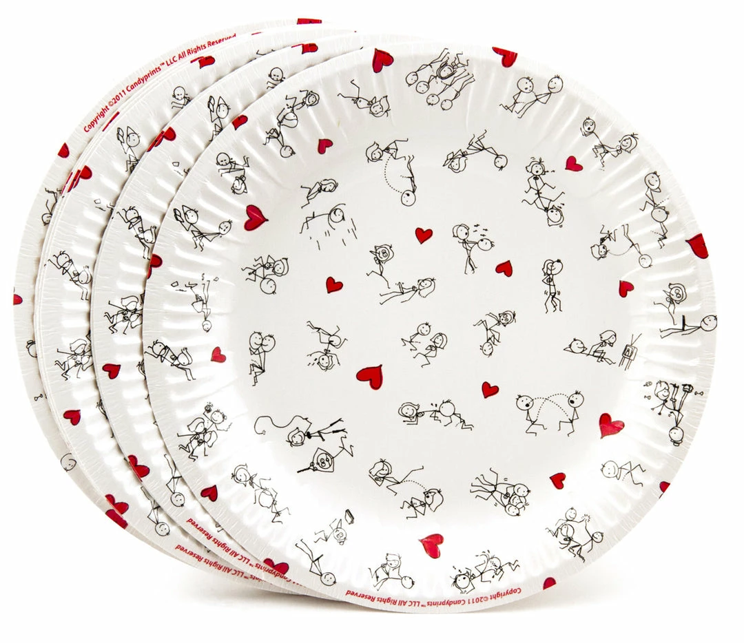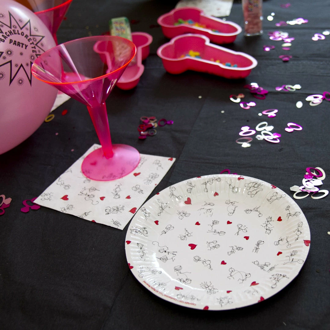 If you love these and are looking to decorate your bachelorette party with further sex position items, we don’t blame you. They’re much more exciting than simple penis-shaped decorations! There are napkins that go with these plates, and toilet paper decorated in a similar fashion, too!