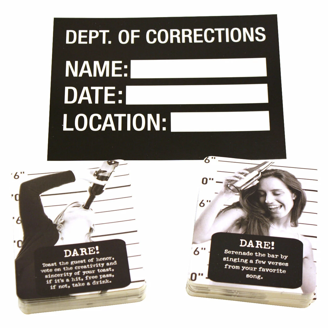 What’s different about this dare game is that it comes with a mugshot poster background, and boards you can use to write out your mugshot details. Take pics of the dares for your mug shots, and post them to Instagram with the tag #partymugshots. Super fun and different … they’ll be just like celebrity mug shots! People will think you had the most dangerous, killer party ever.