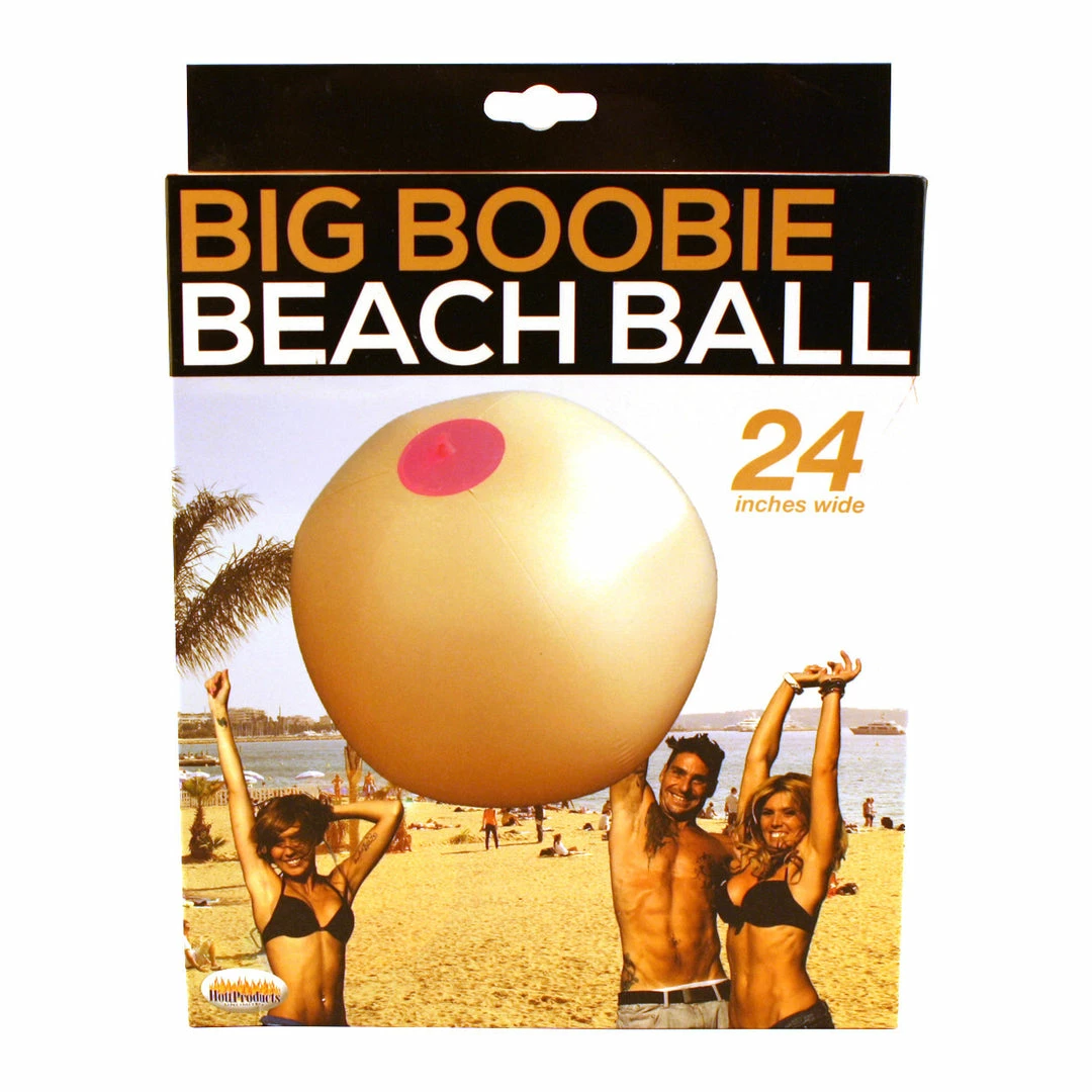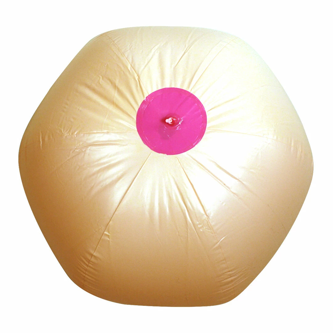 The Big Boobie Beach Ball is flesh-colored with a bright pink nipple centering around the inflation valve. The valve makes it easy to inflate, and pushes inward so as not to ruin the aesthetic effect. The Big Boobie Beach Ball is made of a durable material for maximum inflation, and blows up to a whopping 2 feet in diameter when fully inflated. Now that’s a big boobie!