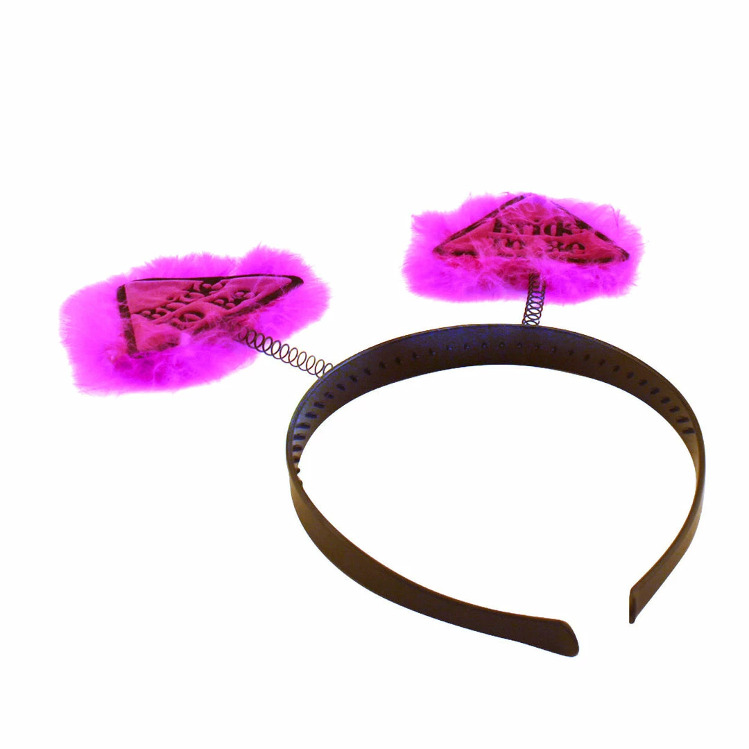 The Bride To Be Triangle Boppers are a pair of soft triangular thingies attached to a sturdy plastic headband by spring that make them wobble to and fro as you move. We use the highly technical term “thingies” here because we’re not really sure what else to call them. But they’re bright pink triangles with black outlines and the words “Bride To Be” spelled out in black lettering. They also have pink feathers shooting out of them on all sides, for added ridiculousness. The bride-to-be will hardly be able to contain her excitement!