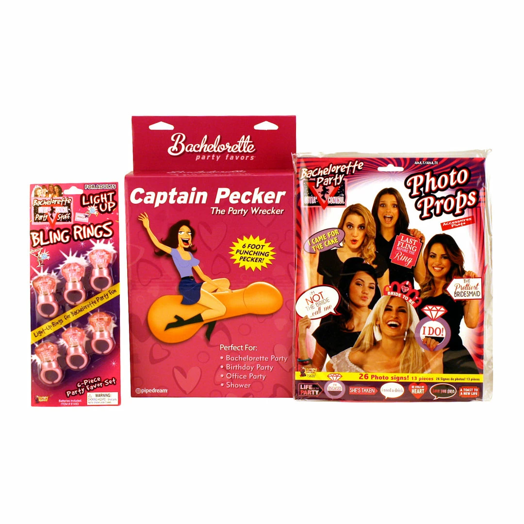 Captain Pecker – the Party Wrecker, as we like to call him – is a six foot tall inflatable penis. We know what you’re thinking: why would anyone ever need anything more than that to make their bachelorette party a smash hit? While we can’t deny that Captain Pecker is perfectly capable of making ladies swoon all on his own, he’s even more of a ladykiller when he has support from some wingmen (that is to say, other bachelorette party props and accessories). With this kit, you get Captain Pecker plus two other great products for an unbeatable price.