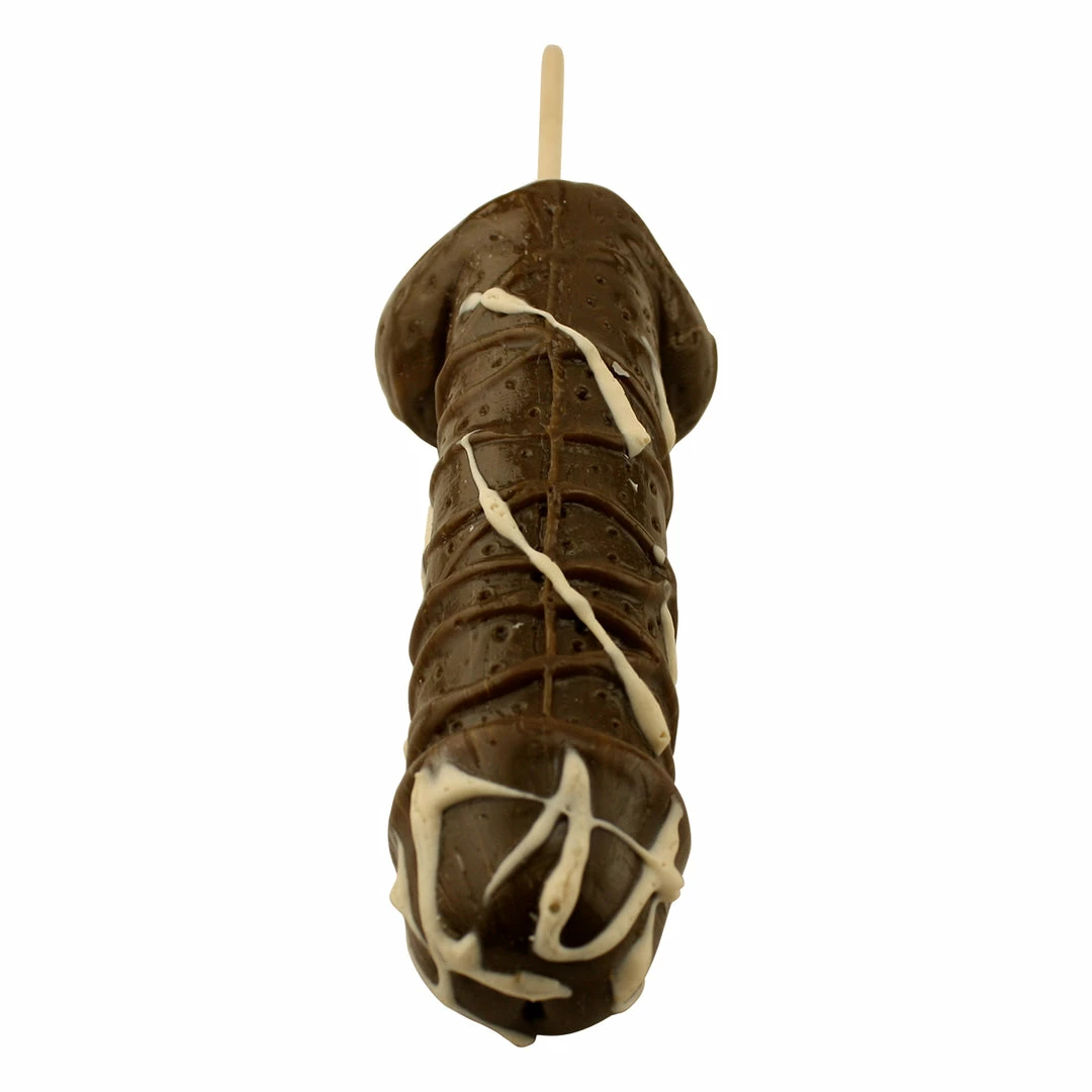 This Chocolate Cum Pop is black in color and is dark chocolate-flavored. For the white, milk-chocolate flavored version, click here.