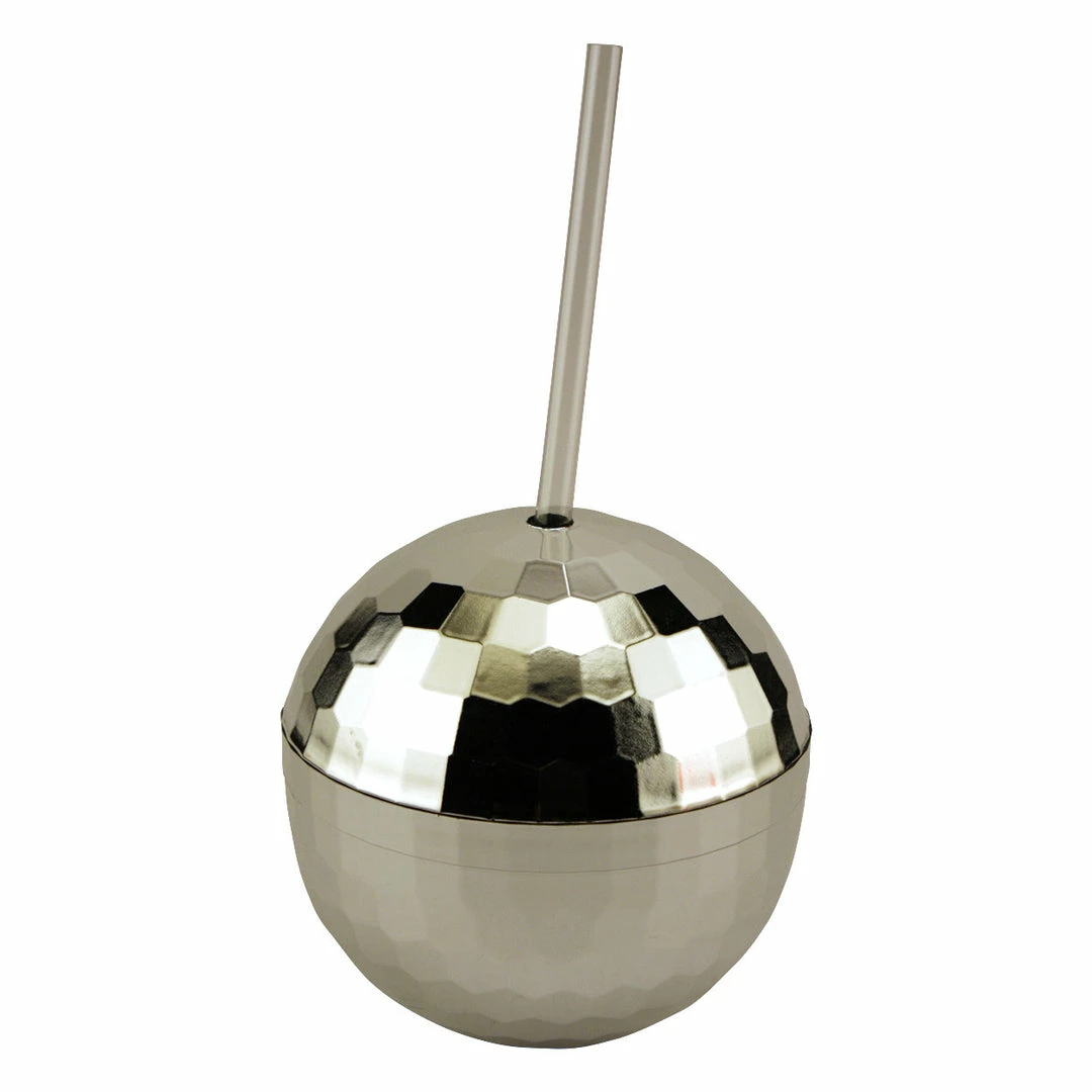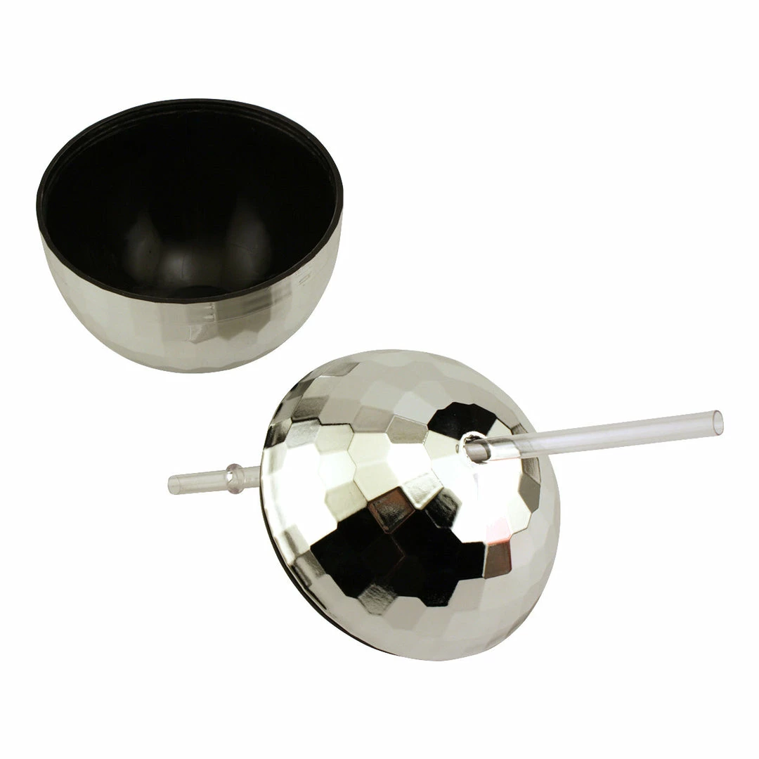 The top of the Disco Ball Cup screws off. Fill her up with ice and a drink. Plastic straw is included.