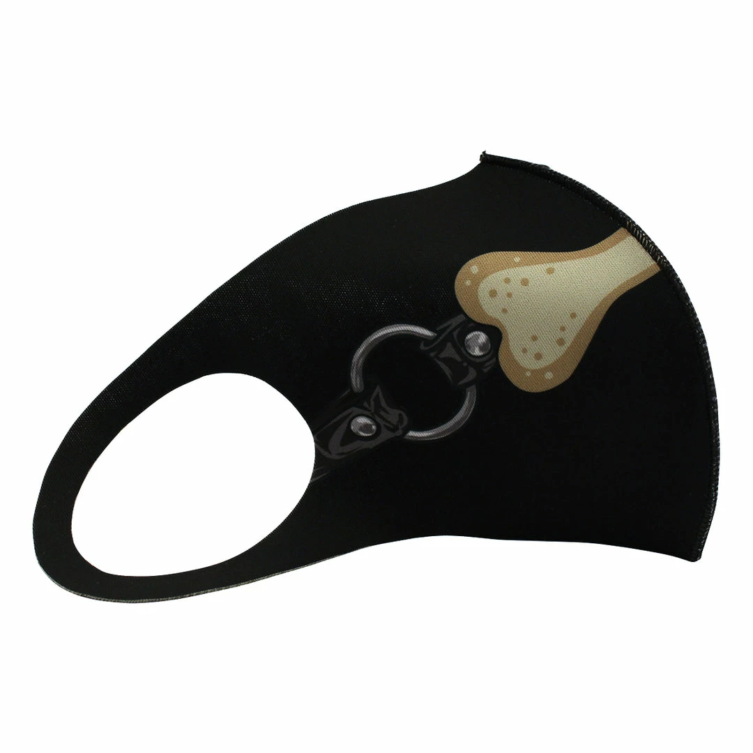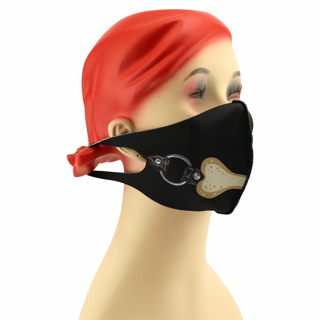 The Dog Bone Ball Gag Face Mask depicts a dog bone ball gag. Maybe this one is for the bachelorette who won’t stop talking about her dog. Maybe it’s for the bachelorette who’s secretly into BDSM. Maybe it’s for a party of wild bachelorette goers who want to signal to others: Don’t f*ck with us.