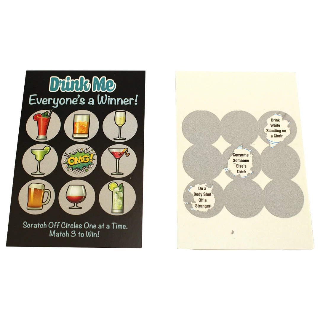 Well, even if you’re not trying to use them as a sort of nicotine gum for gambling addiction, these Drink Me Lotto Tickets are a great game to play at the bachelorette party! Just hand out a ticket to each party guest and scratch the circles off one at a time – whenever someone matches three circles, they win! Of course, this is the best kind of game, because really, everyone wins – after all, each card is full of different ways for you all to get drunk!