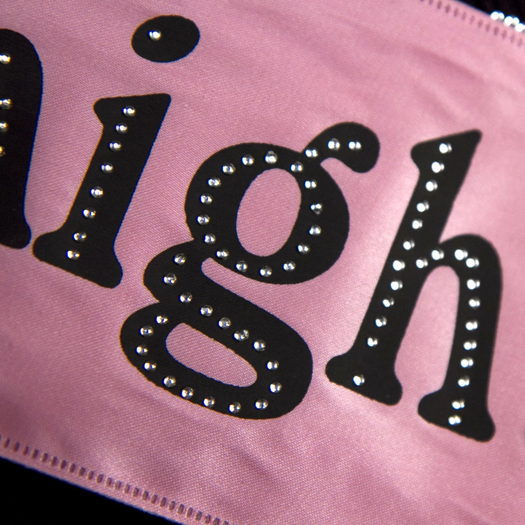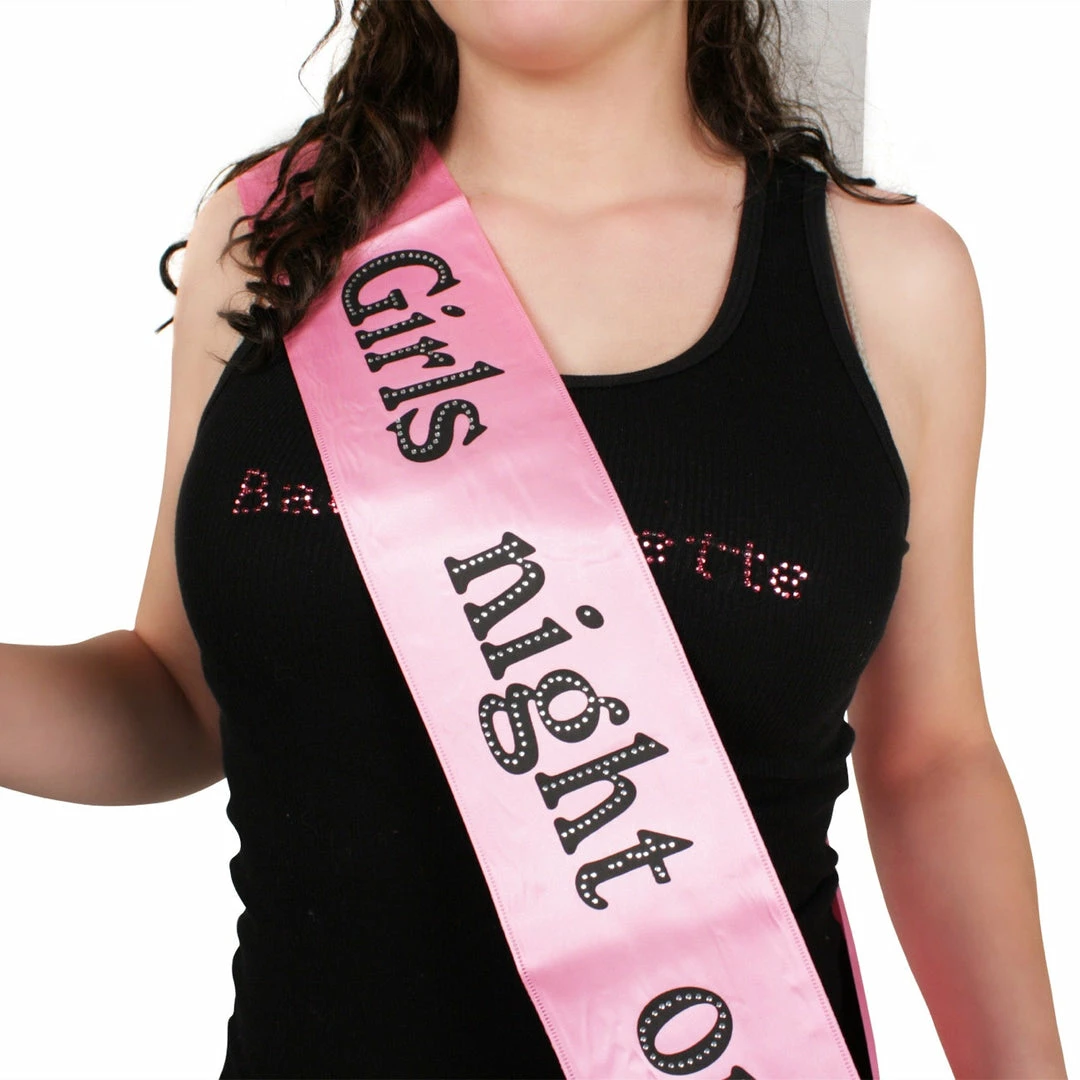 The Pale Pink Girls Night Out Sash is an inexpensive sash that celebrates the bachelorette’s special day! We like this Girls Night Out Sash because it’s pink and black—traditional bachelorette party colors—and the lettering is lined with flashy silver gemstones. The bachelorette can wear this sash, or you can get one for each girl in the bridal party.