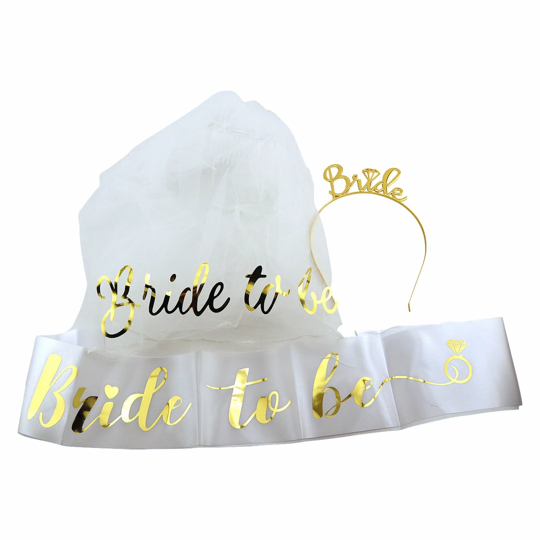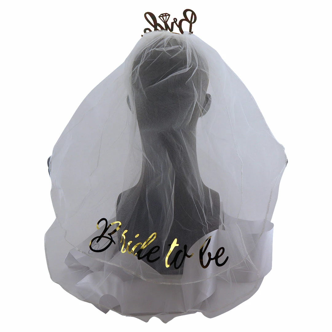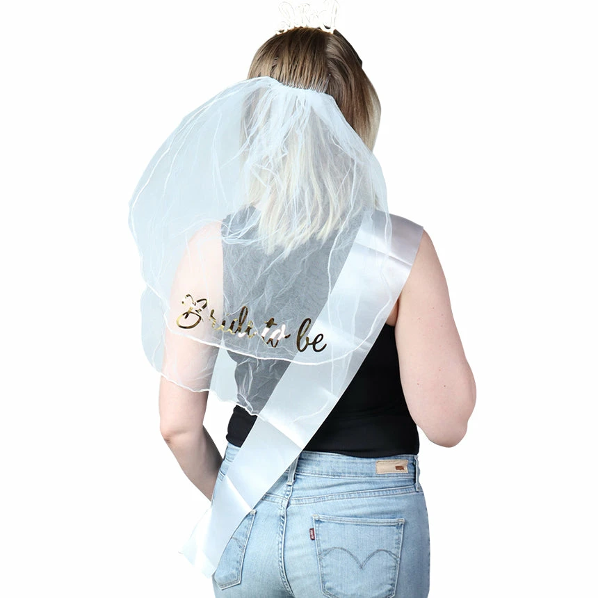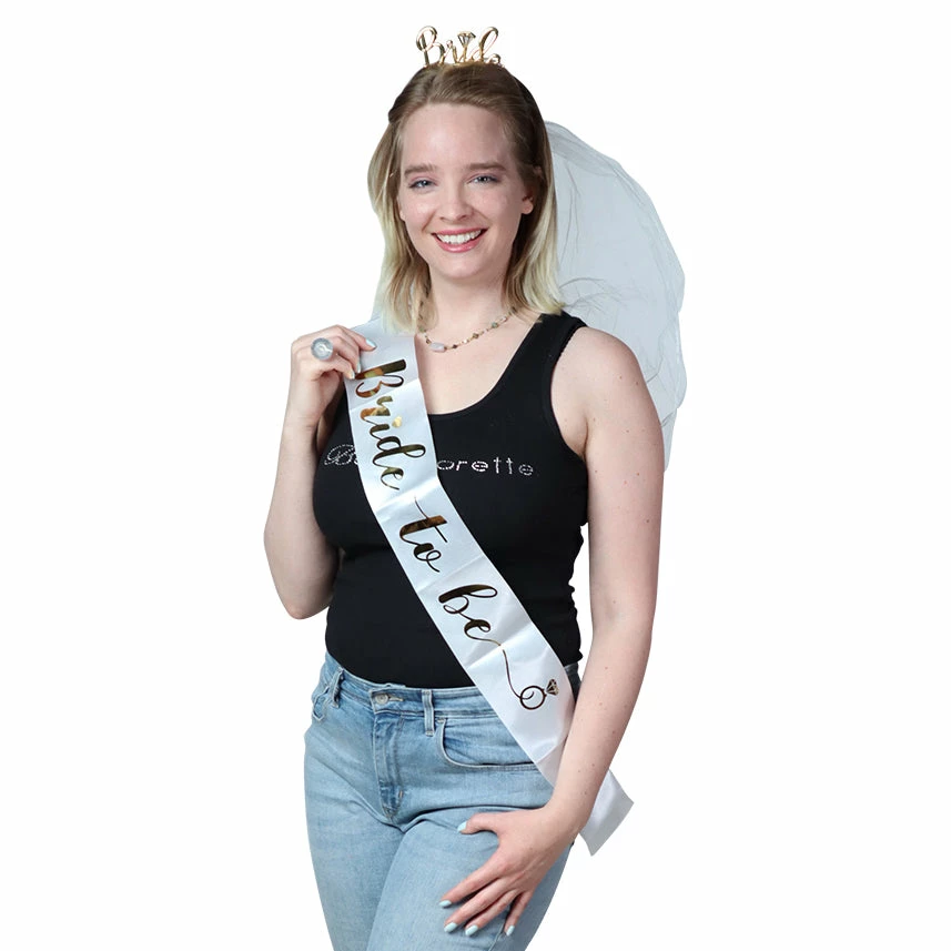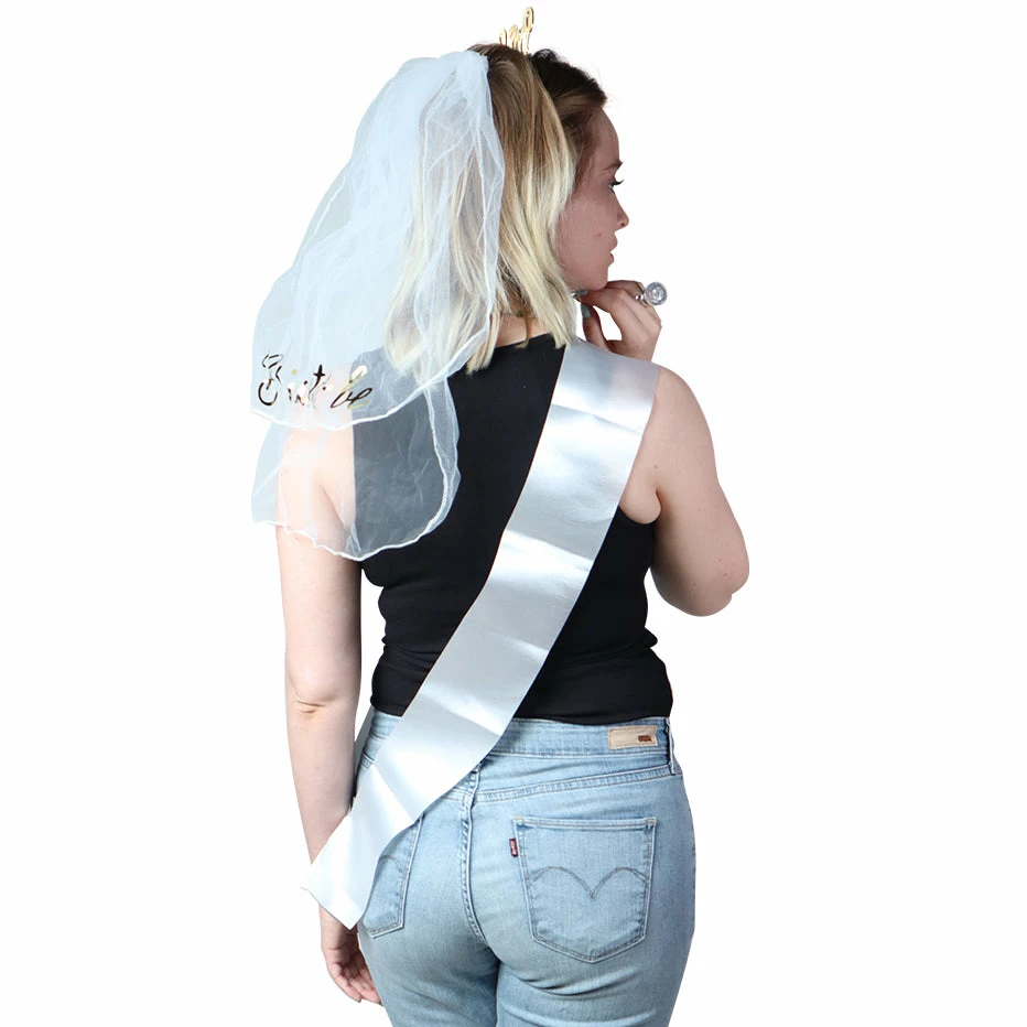 Making the bride look like the princess she feels like at her bachelorette party has never been easier! The Golden Bride Dress-Up Set includes: