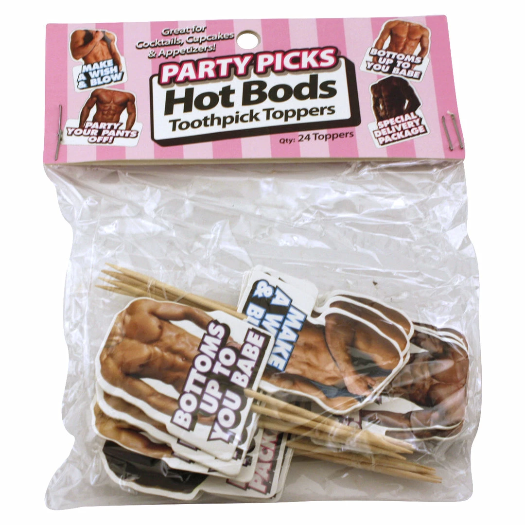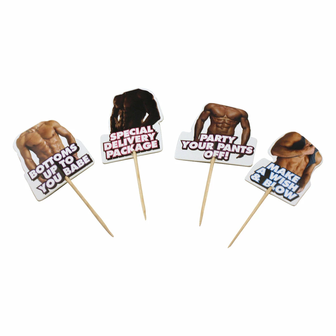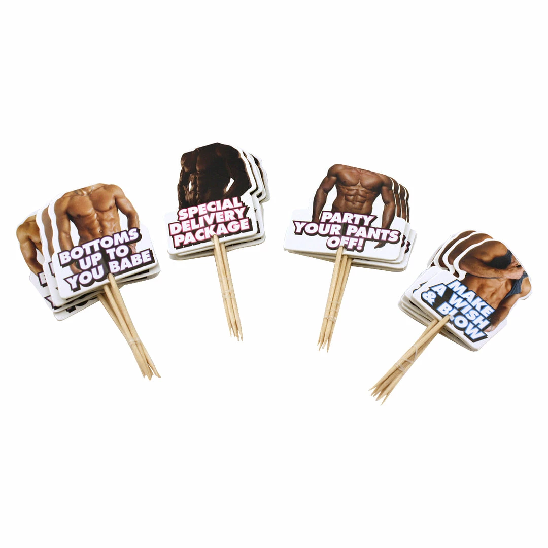 The Hot Bod Cake Toppers are a set of 24 super-hot toothpick toppers that go perfectly on any cake or cupcakes for your bachelorette party or bridal shower.