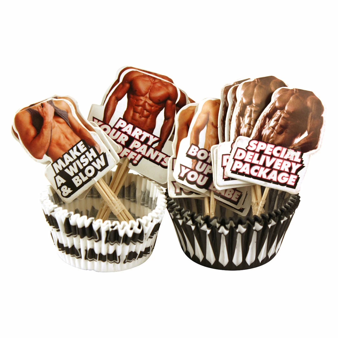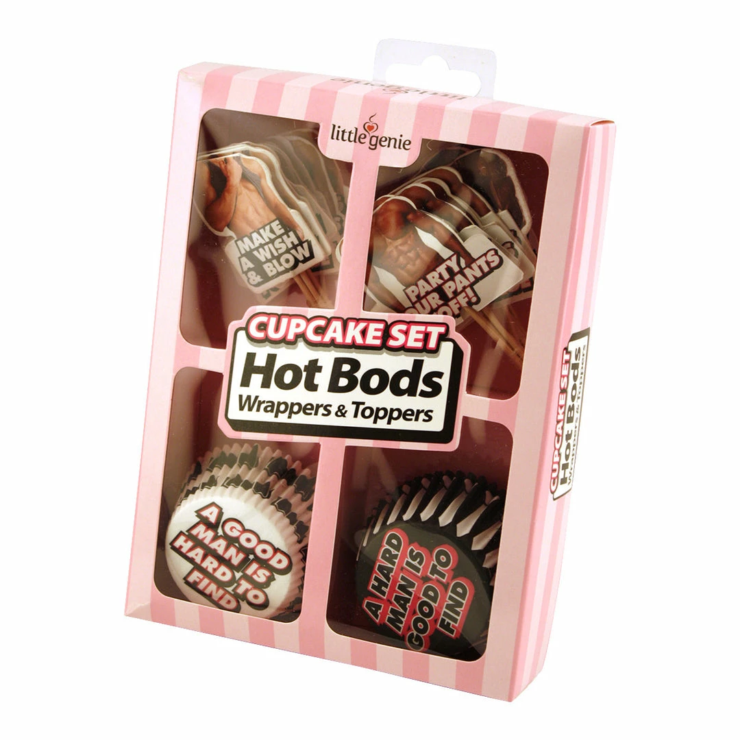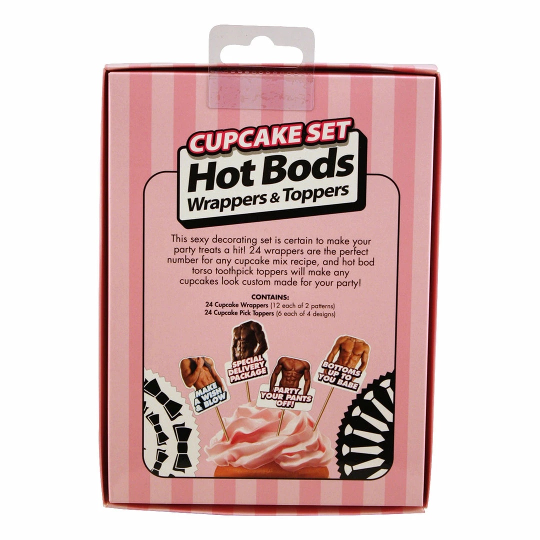 The Hot Bod Cupcake Wrappers and Toppers are a set of super-hot cupcake wrappers and cupcake toppers for the bachelorette party or bridal shower.