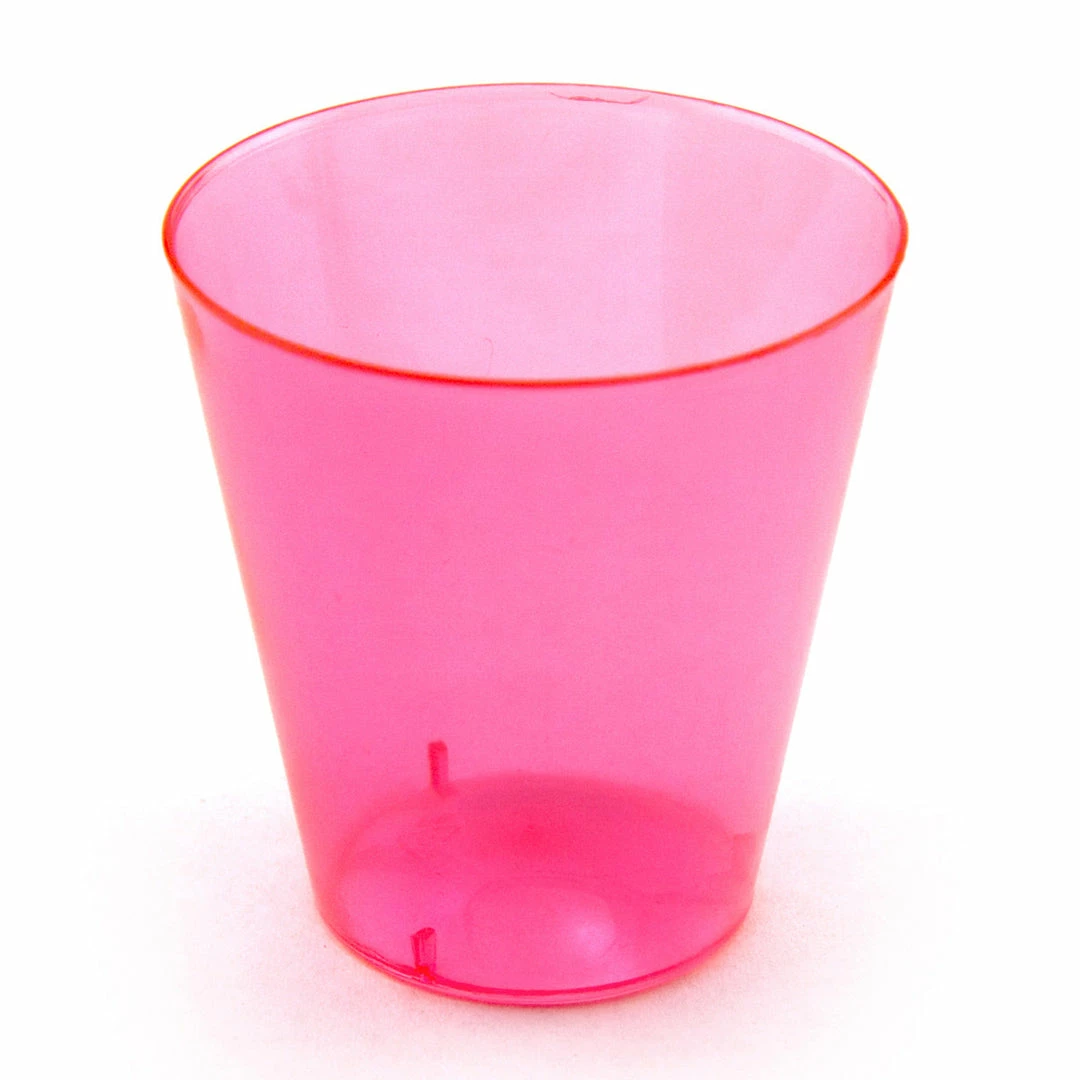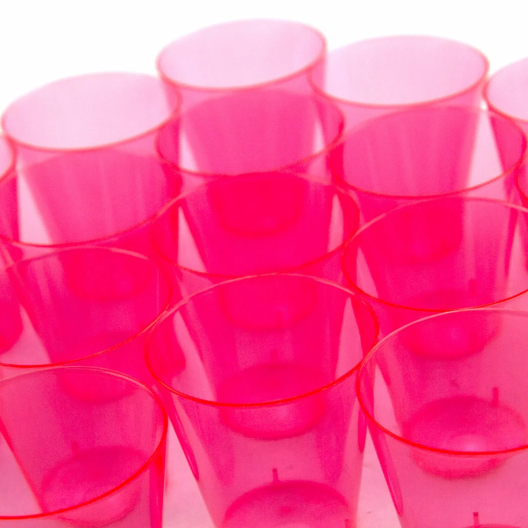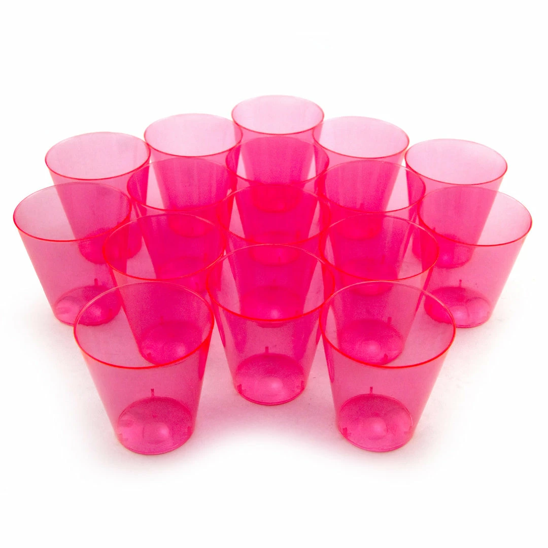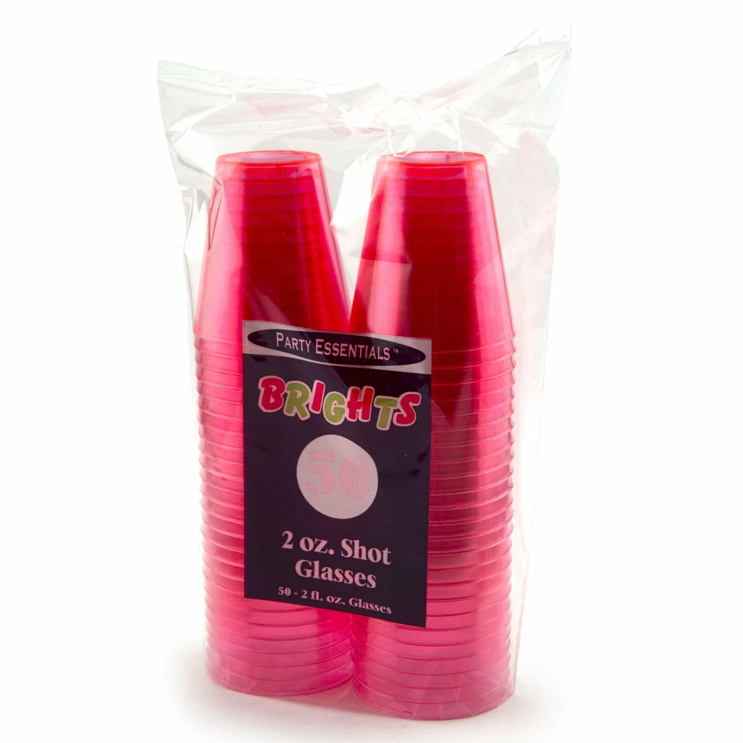 Each package contains 50 neon pink 2 oz. shot cups.