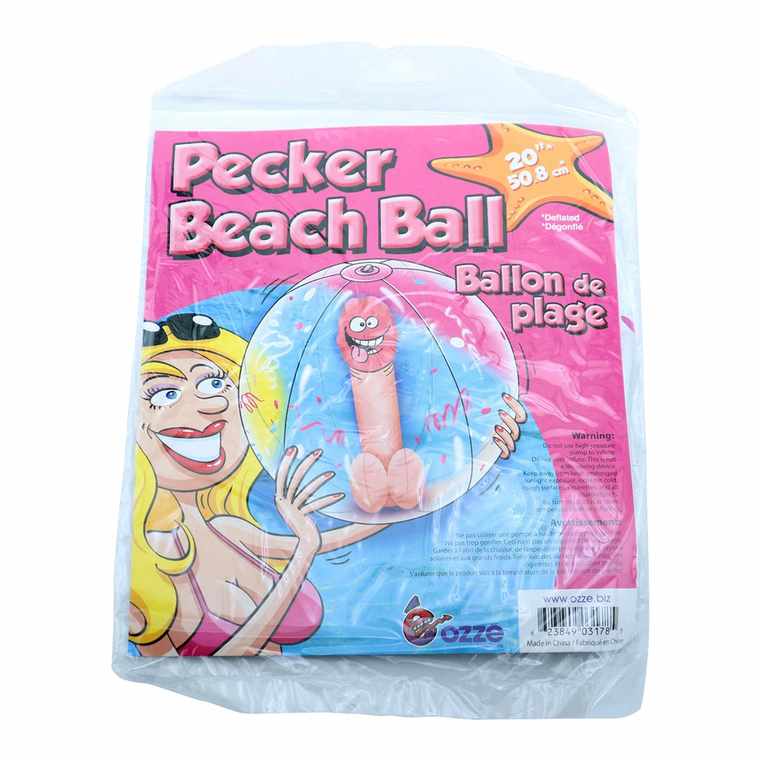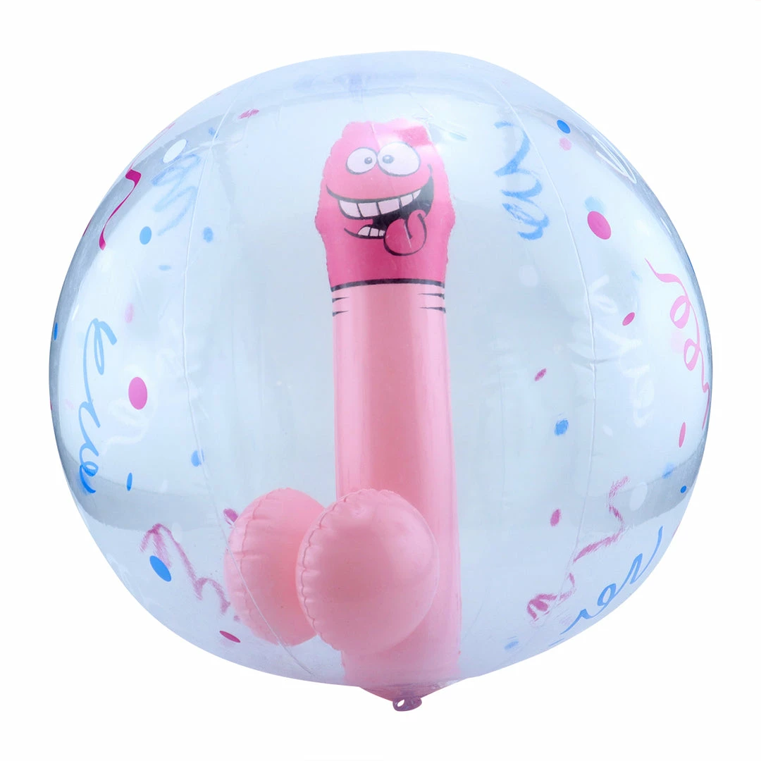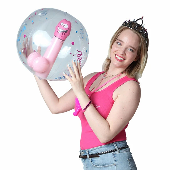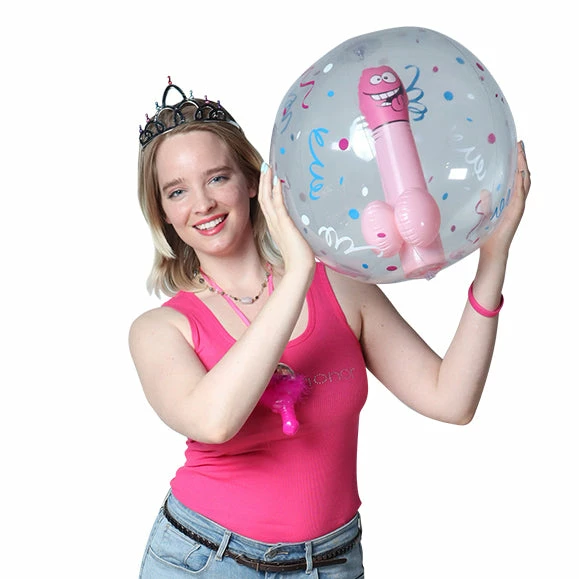 The Pecker Beach Ball makes an excellent bachelorette party game for a summer bachelorette party, beach party or pool party. The ball itself is see-through with a silly inflatable cartoon penis inside of it, measures 20” / 50.8cm when deflated, and is made of phthalate-free plastic.