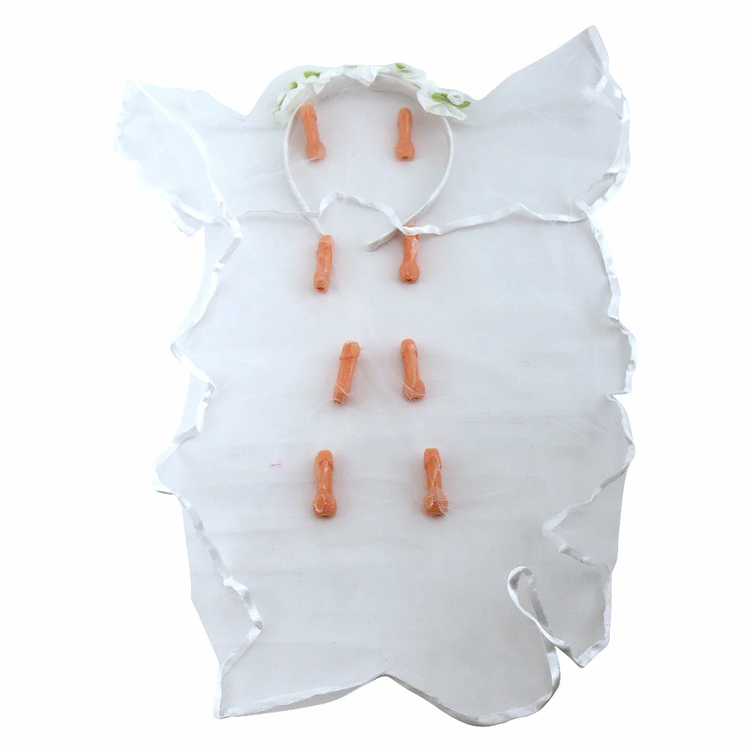 It’s a foolproof plan. As long as, you know, she doesn’t insist on seeing the whole veil. Even if she does, though, she might decide she wants to wear it anyways. It’s a high-quality veil that blends the classiness of chic white fabric and a floral headband with the silliness of eight plastic dicks on the back. Whether the bride-to-be knows it yet or not, she’s going to have a hilarious time wearing this veil around at her party.