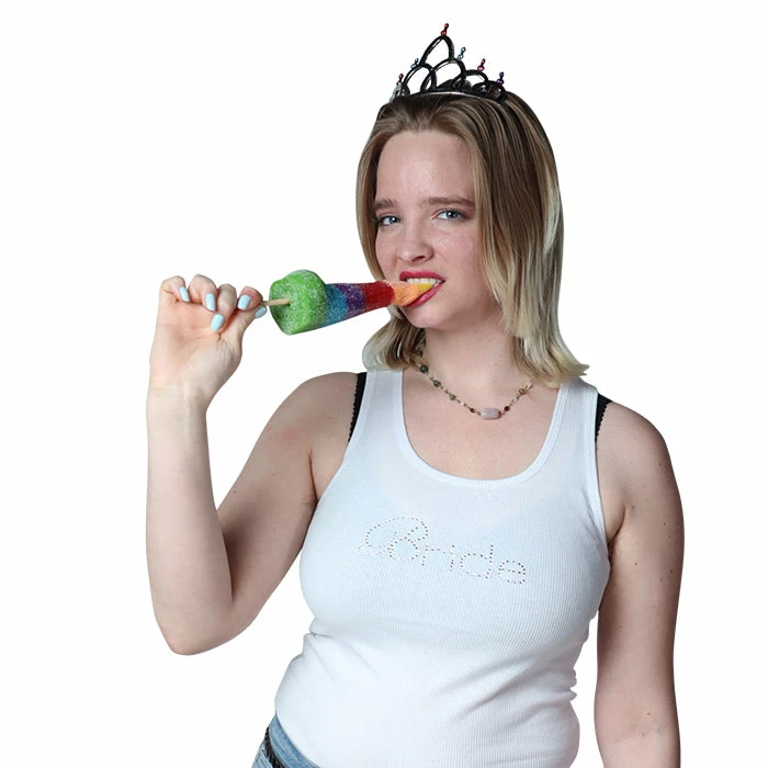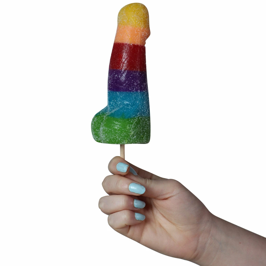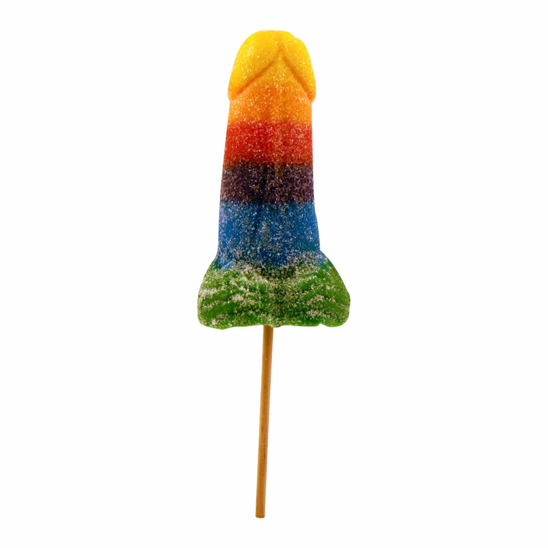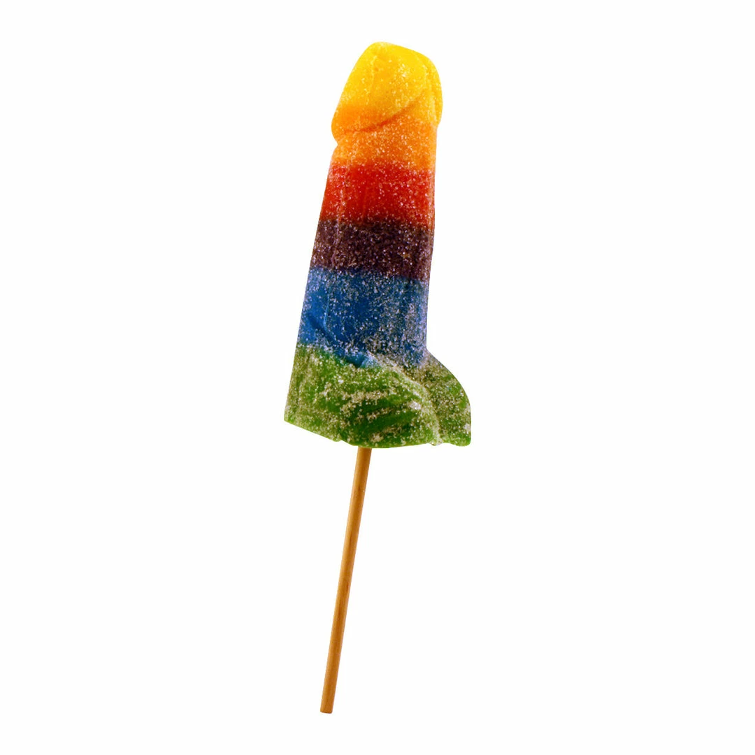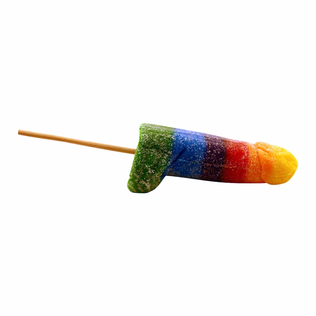 Well, for many of you reading this today, that lifelong quest is finally over; you’ve found it. The Rainbow Jumbo Gummy Pecker is a truly prodigious pecker, and just might be one of the biggest gummy penises in the world. It measures a whopping 9 inches long with the stick (and an impressive 6 without it), with over an inch and a half diameter of girth. It also weighs in at nearly 10 massive ounces of man-meat (or man-gummy, as the case may be). Truly, this is not a gummy penis for the faint of heart, but gummy size queens will find all their desires satisfied by this hefty sweet-and-sour fruity treat. As for any men reading this, well… sorry for making you feel insecure about your own gummy penis.