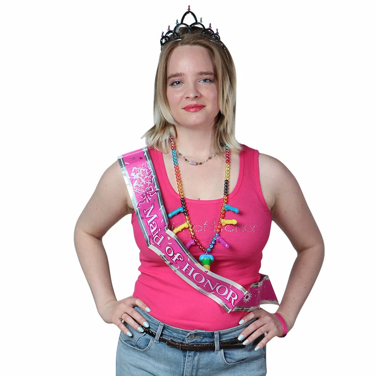 Check out these adorable pink and silver sashes! The Bridal Party Sash Set is an affordable option for those who want to send their girls out in style on the cheap. The Bridal Party Sash set includes every sash you’ll need for your bridal party: