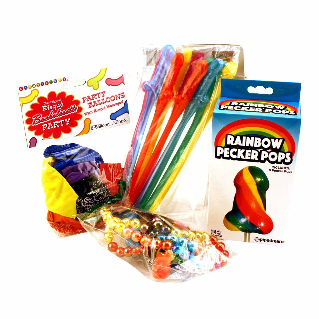 Bring a little color into the bachelorette’s life with the Rainbow Bachelorette Party Kit! The Rainbow Bachelorette Party Kit collects some of our most popular and most colorful items to help you throw a garishly unforgettable bachelorette party. And of course, with all these rainbow penises, it’s also perfect for a bachelor party for a gay guy!