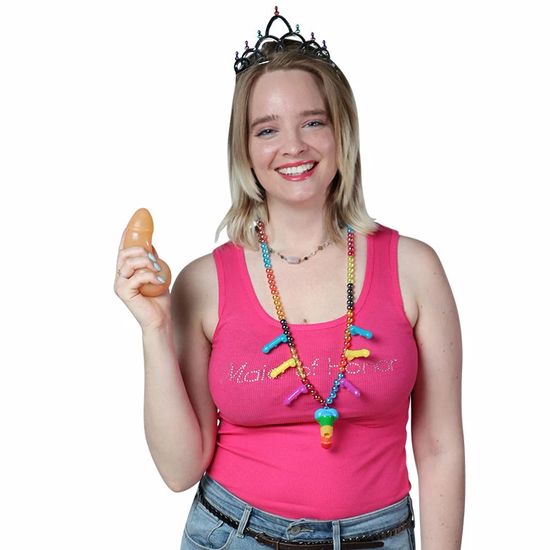 If your bachelor or bachelorette is looking for all eyes to be on them at their party – or, if they’re looking to absolutely avoid attention at all costs but you’re not about to let them get away with anonymity on their big night out – then look no further than the Rainbow Pecker Whistle Necklace. This necklace is made from a variety of colorful shiny beads, and has six small plastic penis charms hanging off it. To top it all off, in the middle of these charms is a larger multicolored penis which is not only eye-grabbing, but ear-grabbing too – it’s a whistle! If you want the bachelor or bachelorette to seize the senses of everyone around, there’s no better way to do it than with the Rainbow Pecker Whistle Necklace.