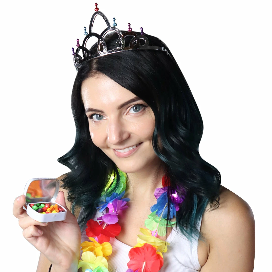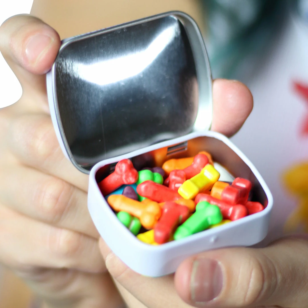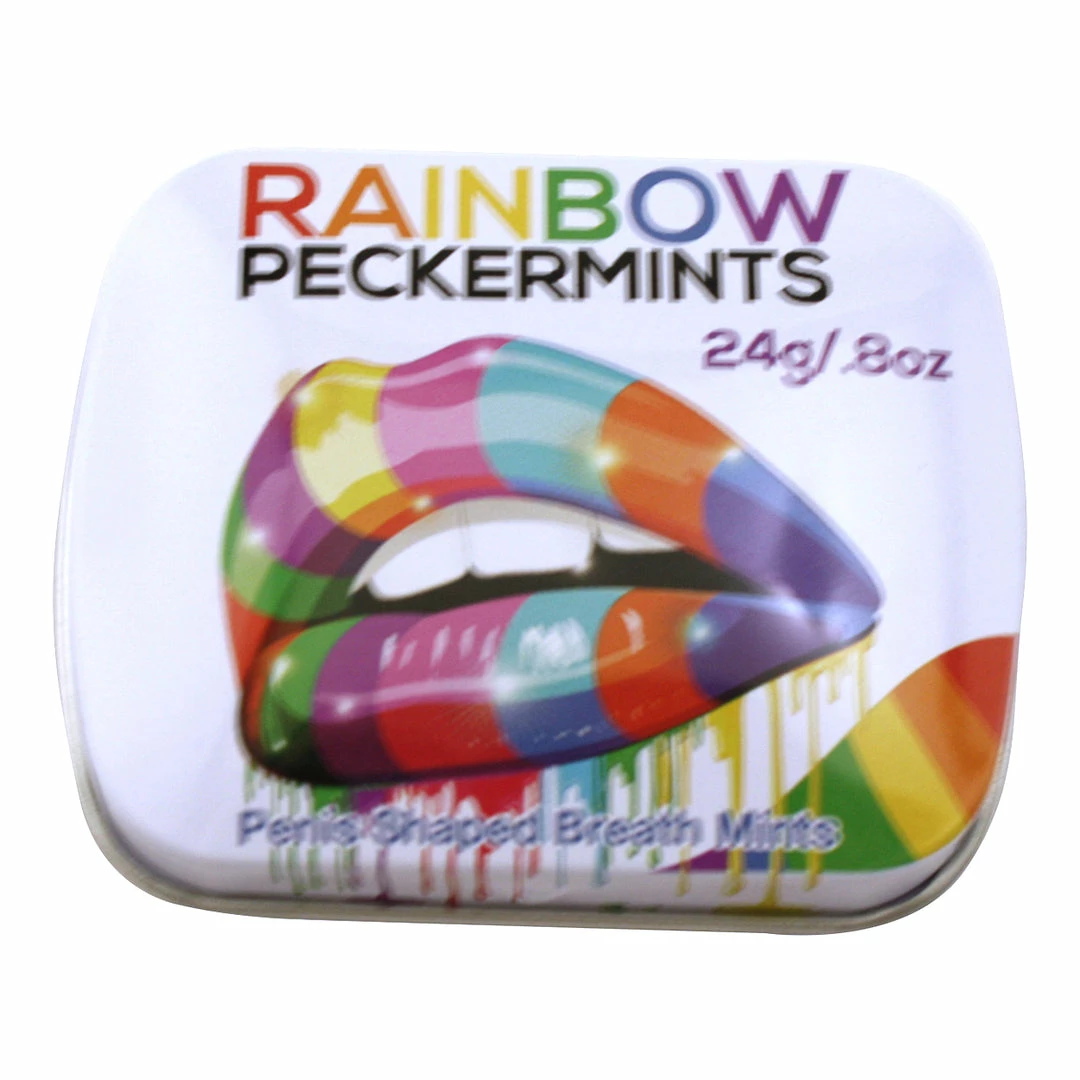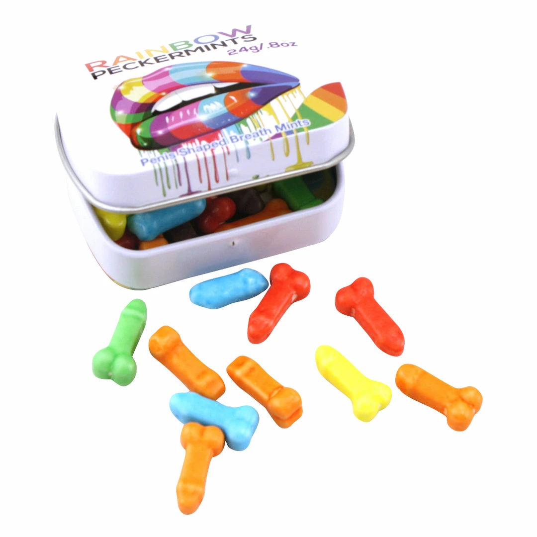 Rainbow Peckermints taste just like altoids or other breath-freshening mints, except they’re shaped like funny little penises. And they’re rainbow-colored, of course, with six different colors to choose from! Each tin comes with approximately 30 penis mints, so there’s more than enough to share with the whole party. Now, doesn’t that sound like exactly the sort of thing you want to freshen your breath with? That’s what I thought!
