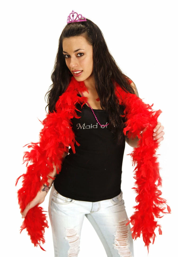 Next we shopped for a nicer one, but they were all too expensive. Eventually we found this one which is thick, soft, and nice. It is the best boa this price can buy. Perfect for the discerning bachelorette.