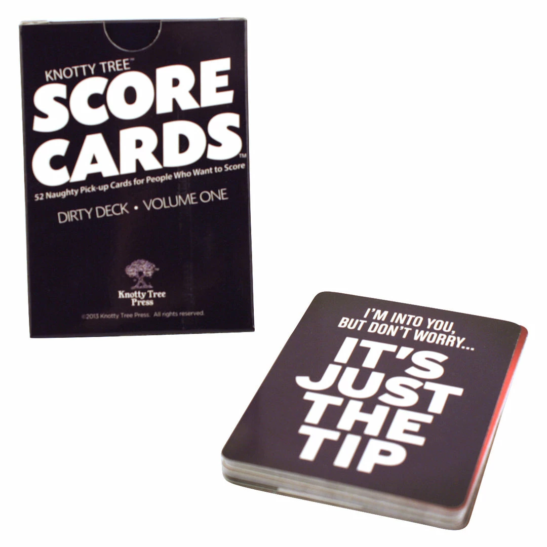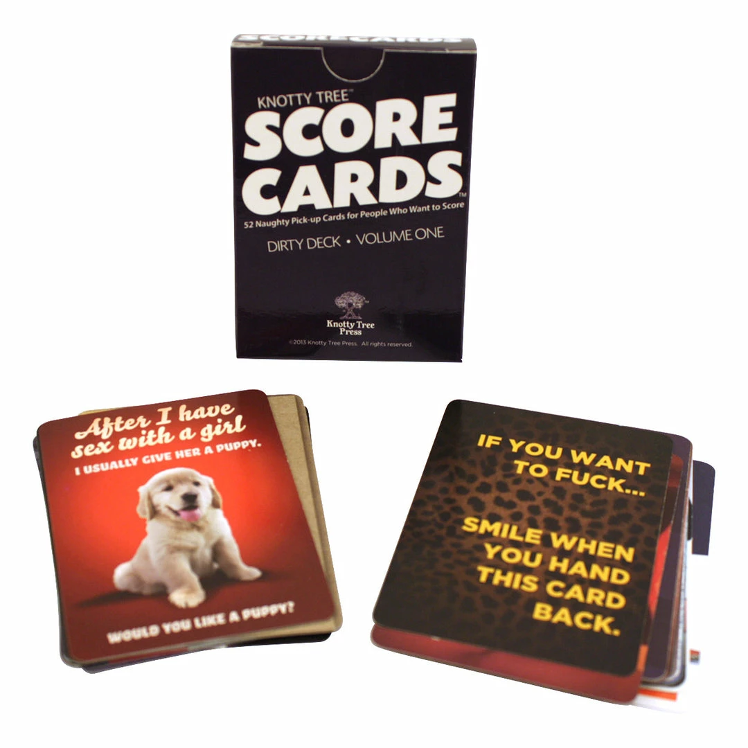 The way Score Cards work is simple: approach a girl you’d like to take home and hand her one of these cards before you introduce yourself or say anything at all. If you’re lucky, she’ll laugh, and you’ll be much further toward bringing her home than you would be with an ordinary pickup line. If you’re unlucky, you’re probably going to get slapped in the face. Of course, some of these cards are more likely to lead to one outcome than the other. Some of them are pretty clever and likely to elicit a laugh, like “I’m like a trick coin: 100% chance you’ll get head.” Others are so blunt you’d have to be a pickup wizard to pull them off: “I buy you a beer… you give me a blowjob?” Fortunately, there are enough cards to choose from in this pack that everyone in your party should be able to find some good ones. But be selective in handing them out: once a girl reads these, whether they’re impressed or angry, you’re not likely to get your card back!