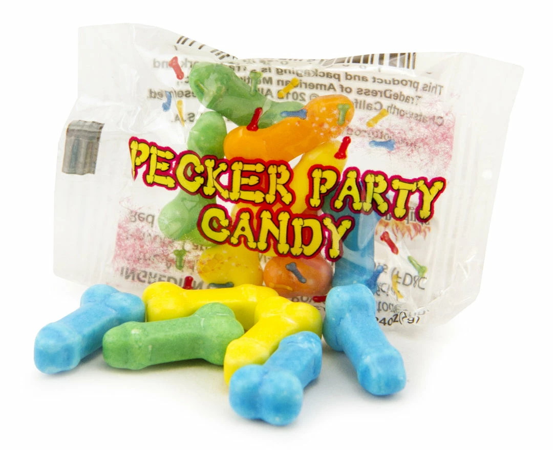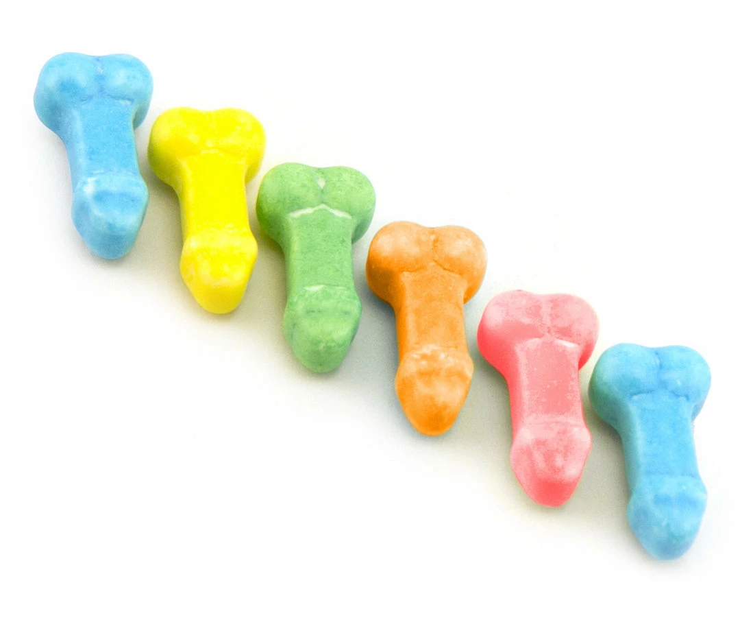 Despite their small stature, these guys are delicious, with a flavor so big they taste three times their size. They come in a variety of awesome fruit flavors, to please the girls at your party who like penises of all shades and colors. Each package contains a random assortment of five fruit-flavored penis candies.