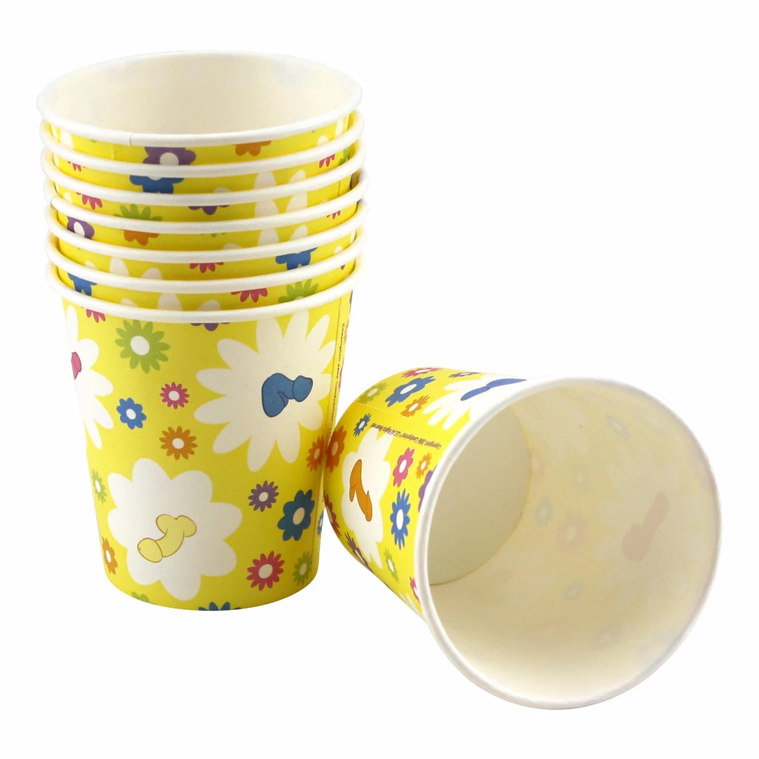 These cups are decorated with colorful penises and flowers, and if that isn’t superfun, I don’t know what is. 8 cups per pack.