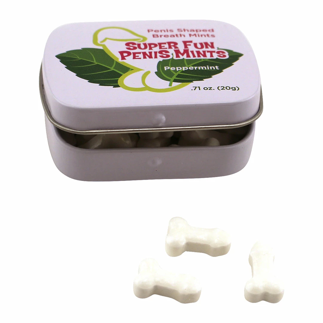 Super Fun Penis Mints taste just like altoids or other breath-freshening mints, except they’re shaped like funny little penises! Each tin comes with approximately 20-25 penis mints, so there’s more than enough to share with the whole party. Now, doesn’t that sound like exactly the sort of thing you want to freshen your breath with? That’s what I thought!