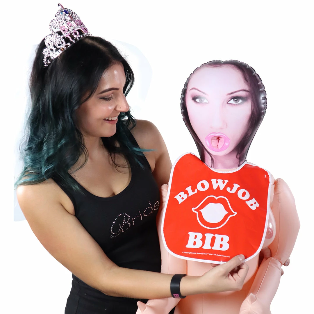 The Blow Job Bib makes a wonderful gift for your conservative, sophisticated bride-to-be. When she’s not donating her time to charity, saving animals from wildfires, attending church functions or wining and dining clients over martinis, she’s probably going to want to be wearing this bib. Actually, come to think of it, she might want this bib during some of those activities, too.