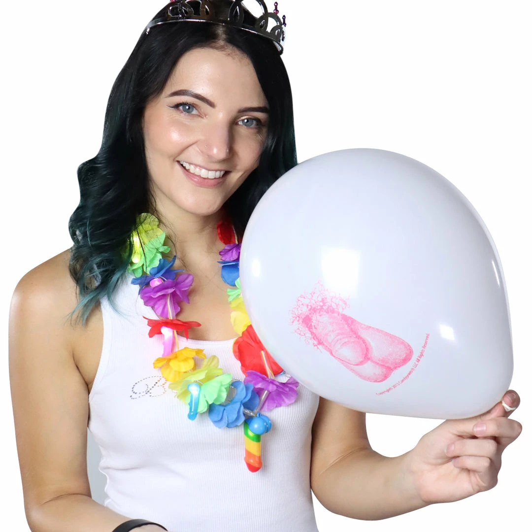 The Realistic Penis Balloons are hysterically gross. They are white balloons with colorful prints of realistic penises on them. Each balloon features a different hairy, flaccid penis, complete with a tuft of pubic hair and balls. With peni that appear to be taken straight out of an anatomy book, these balloons are sure to please every girl at your party. Or torment them. Or at least make them laugh uncomfortably.