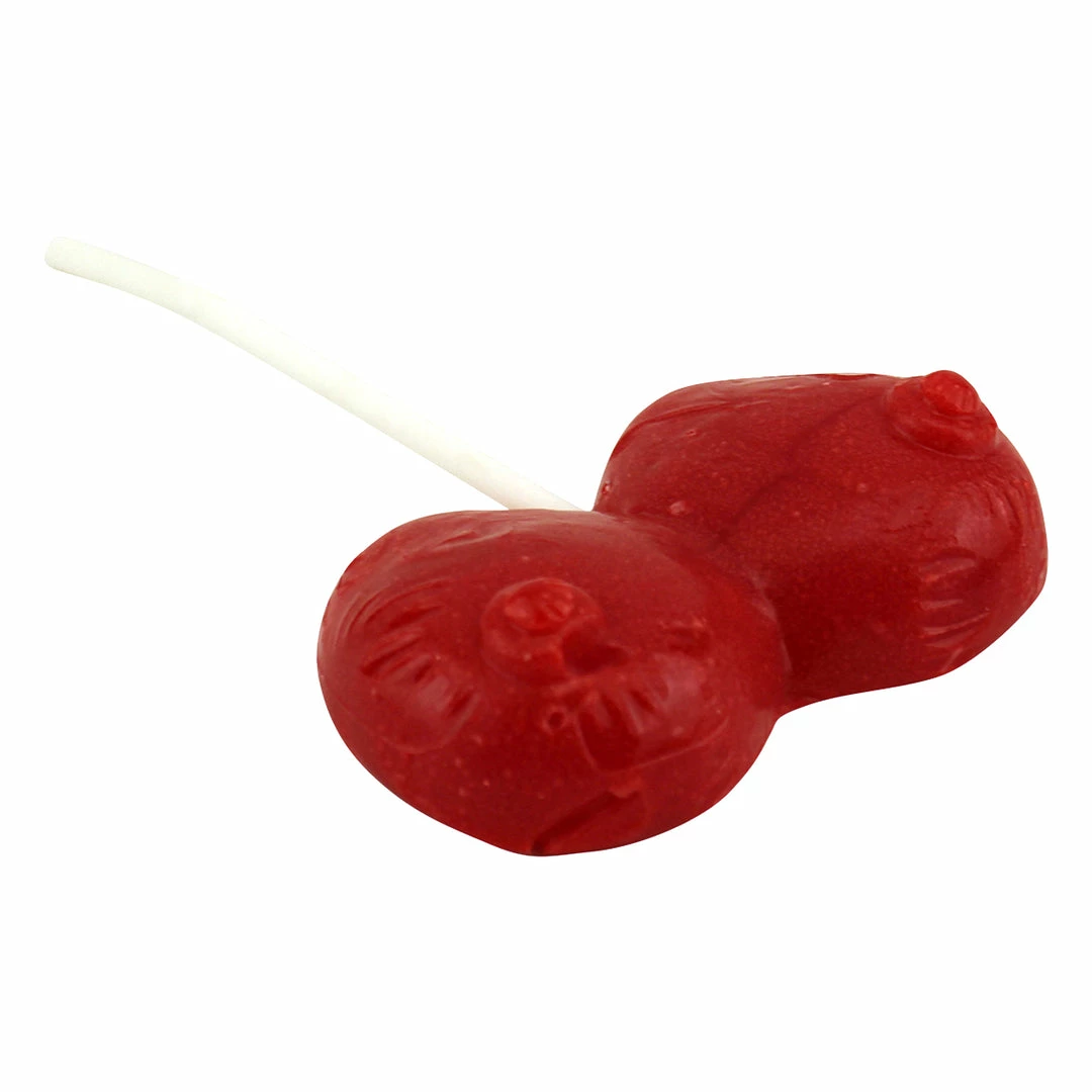1 super tasty cherry Titty Titty Yum Yum sucker per order. This sucker measures about 2 inches across.