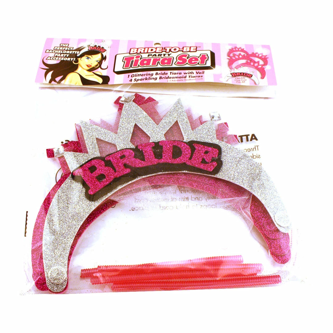 The Bride-to-Be Party Tiara Set includes four sparkling pink tiaras for the bridesmaids, and a special silver tiara for the bride-to-be herself, so even though you’ll all be wearing tiaras and looking like royalty, it will still be clear whose party it is! All of the tiaras are cut in an elegant crown-like design, and the bachelorette’s even has three gemstones attached to it. Her special tiara also has the word “BRIDE” written across the front in big pink letters, and a short veil coming out from the back, to further distinguish her and lavish her with class and beauty!
