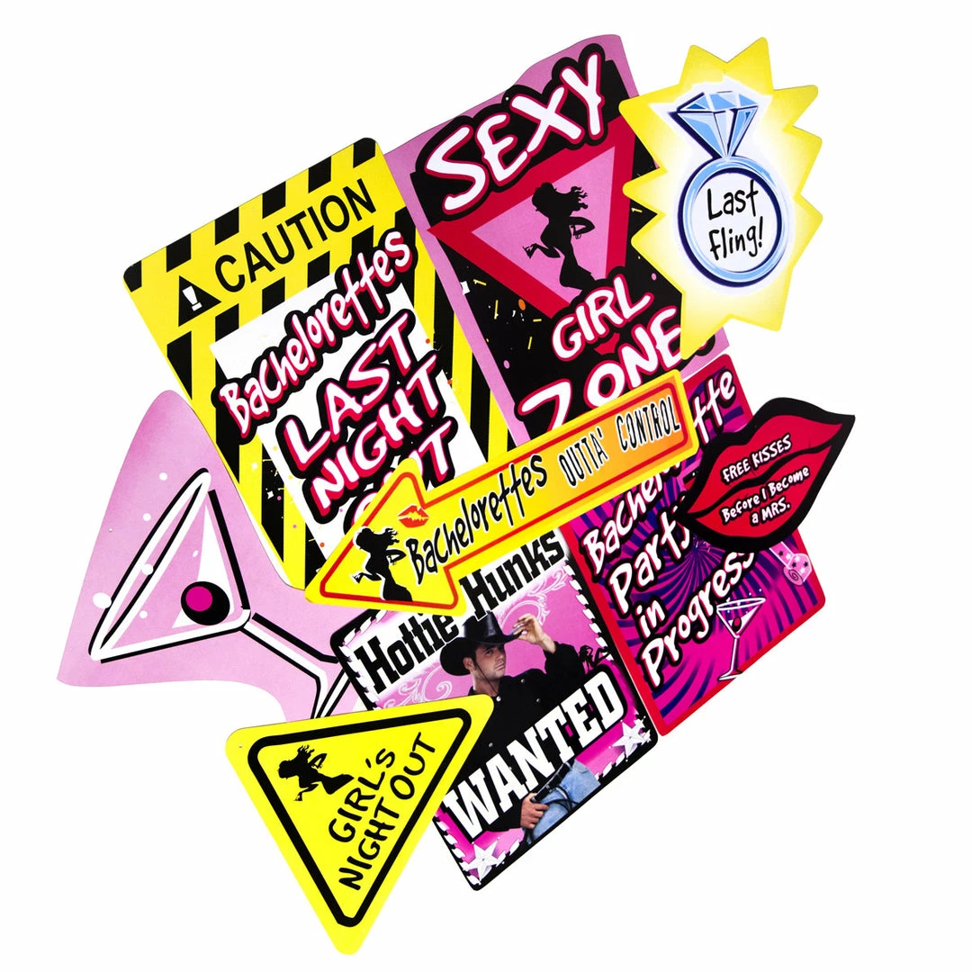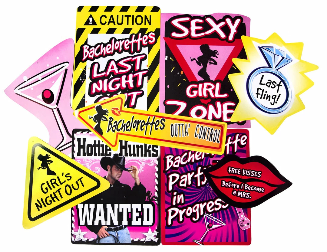 The Wall Decoration Kit gives you a way to turn any room into a rockin’ bachelorette party! This kit of posters is perfect for any bachelorette party. It includes signs that say things like “Bachelorette Party In Progress,” “Hottie Hunks Wanted,” “Last Fling,” “Sexy Girl Zone” and more.