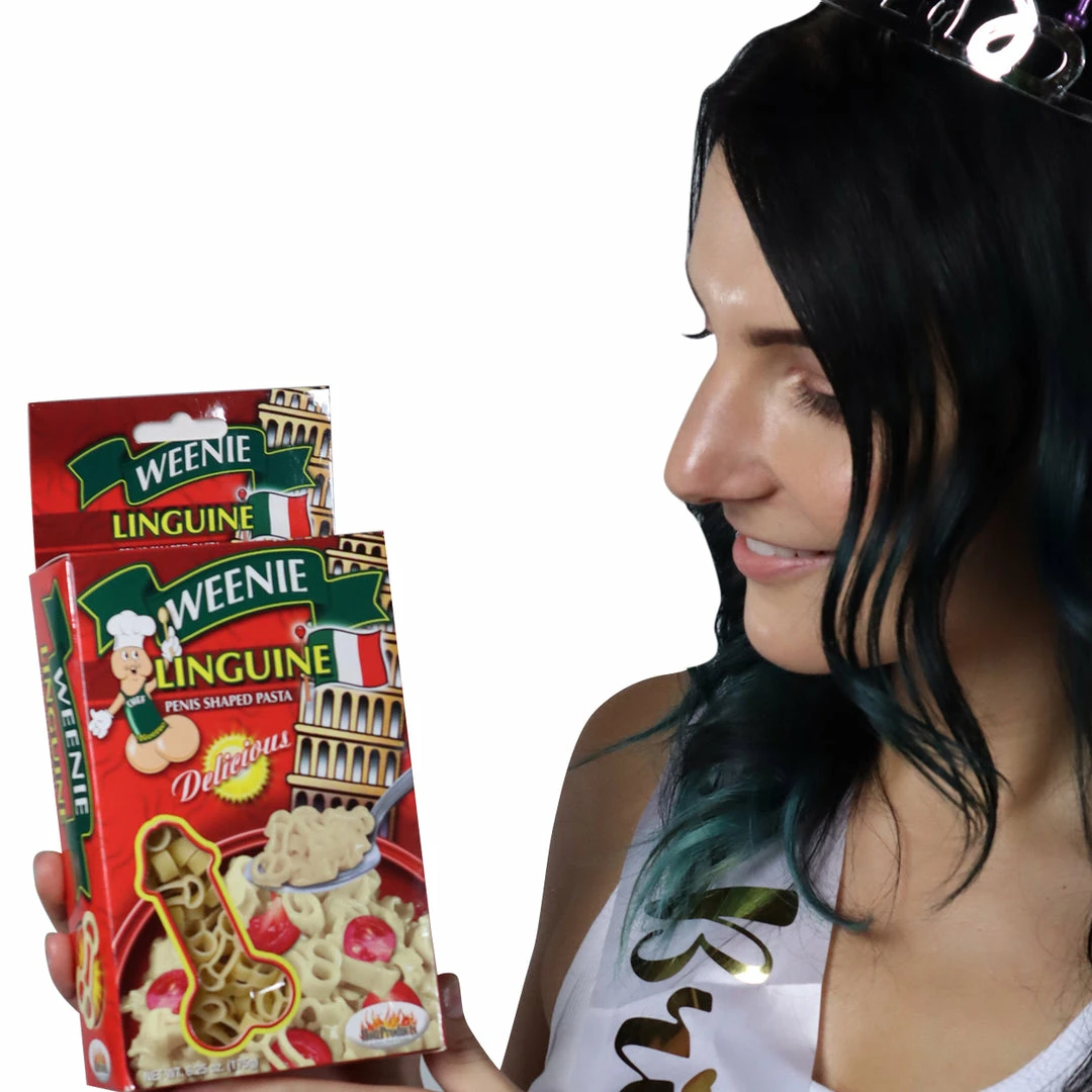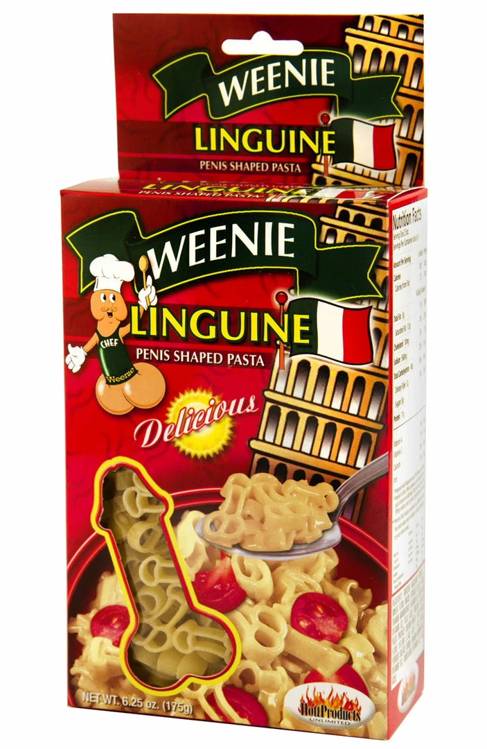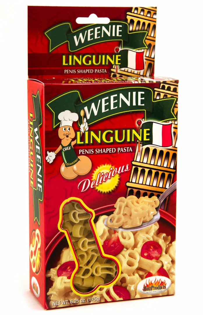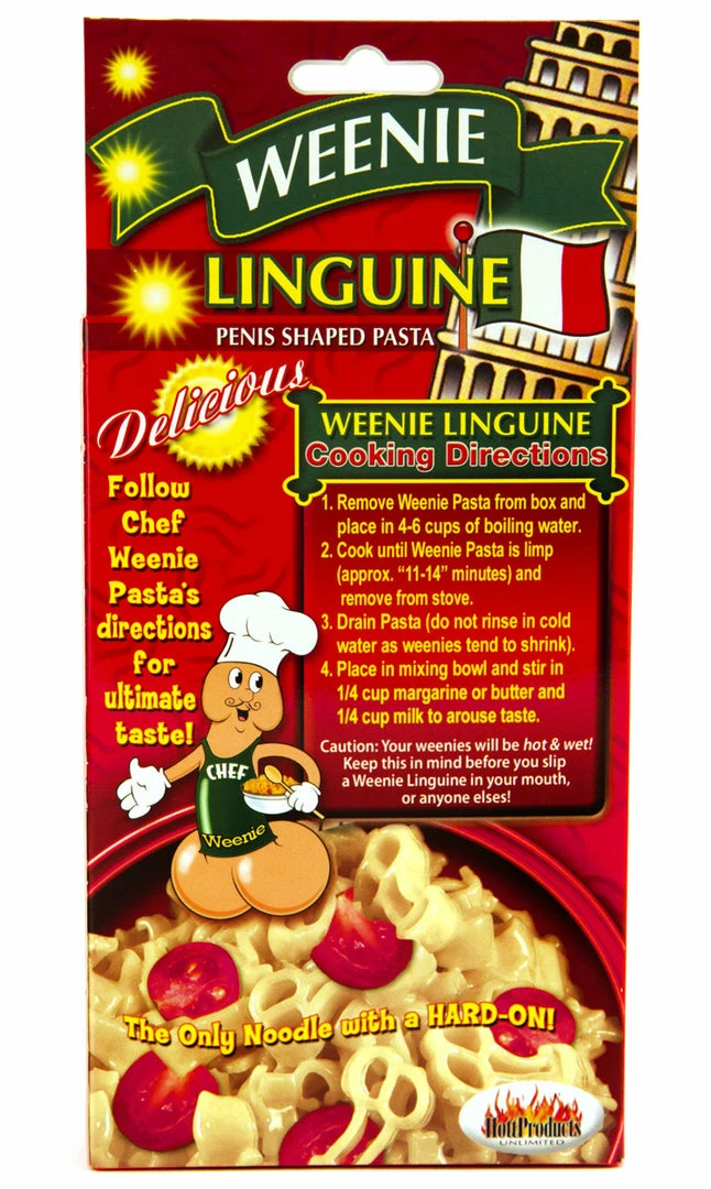 The boxes of Weenie Linguine are a bit smaller than the normal boxes of pasta you buy at the supermarket, but what they lack in size they more than make up for in… penis-ness. If you want to make a recipe that all the girls at your party can eat, you may want to buy more than one box.